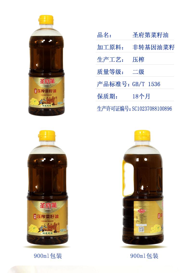 Shandong Shengfu Botella Pequeña de 900 ml de Aceite de Colza de Sabor Fuerte para Uso Comercial y Doméstico, Caja Completa Empaquetada en Barril Venta al por Mayor de Aceite Comestible