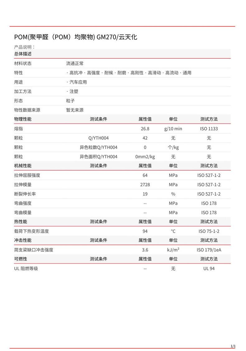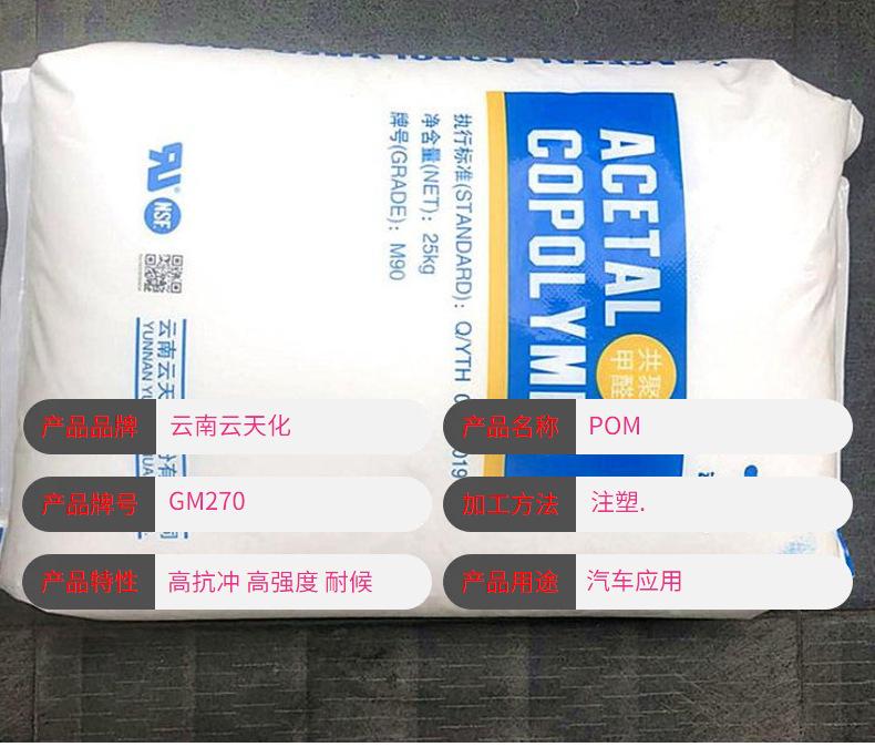 POM Yuntianhua GM270 Grado de inyección Alta resistencia a la intemperie Resistencia al desgaste Piezas de automóvil de alto deslizamiento