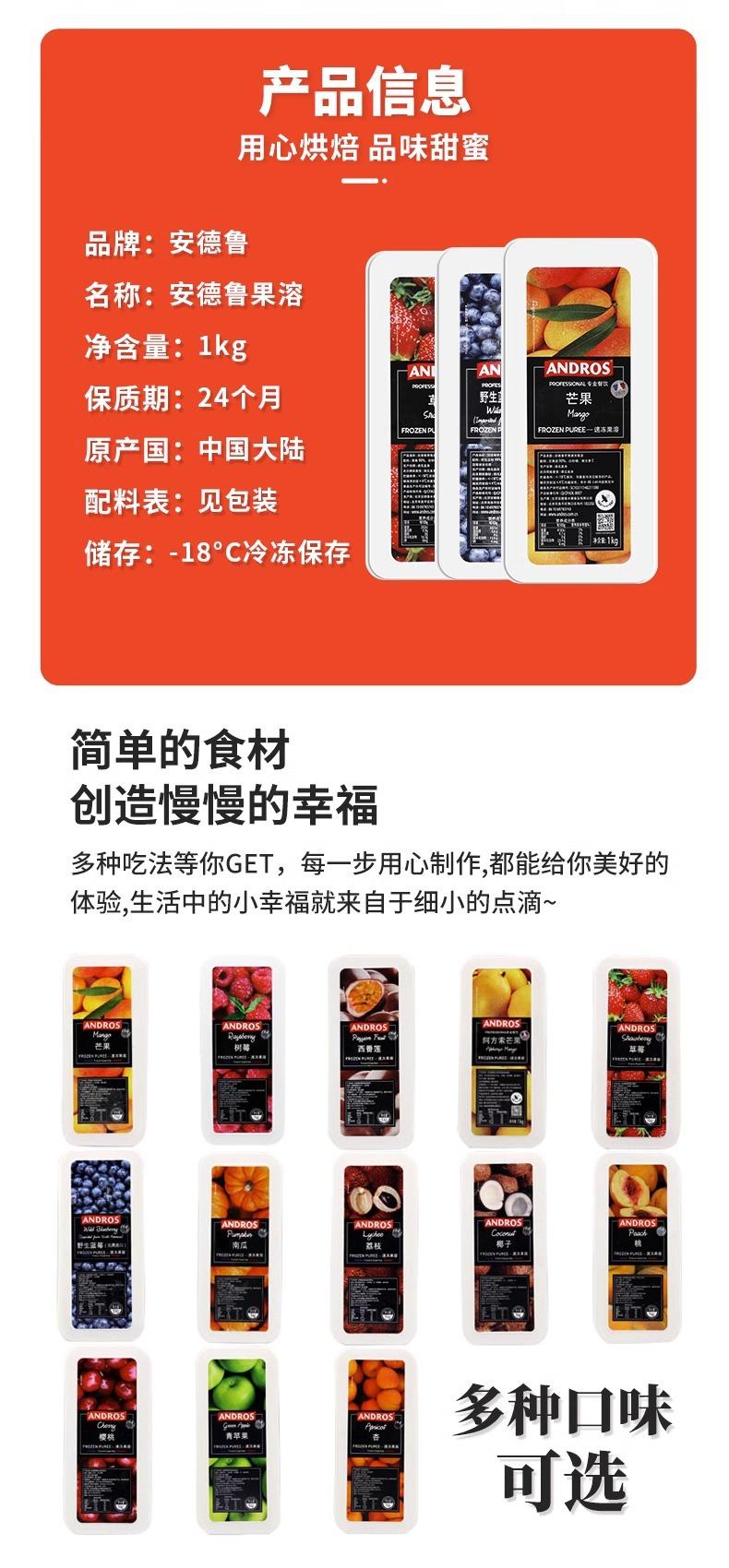 Andrew sabor fresa fruta soluble fruta ultracongelada 1kg * 8 horneado batido crema cortina agua congelada materias primas