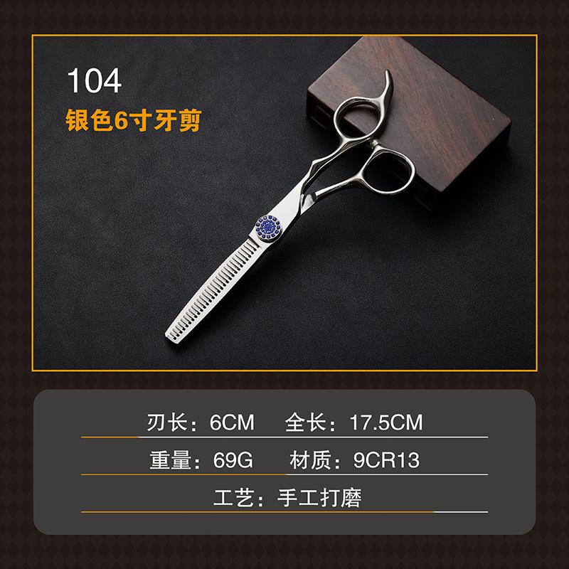 104 silver 6inch flat cut, 104 silver 6inch dental scissors, 104 flat teeth 9 piece set