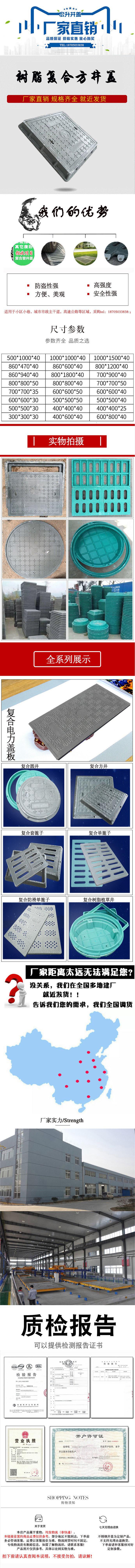Tapa de alcantarilla de resina compuesta aguas residuales agua de lluvia pozo de energía corriente débil comunicación bajo pozo de hombre pozo cuadrado tapa de alcantarilla municipal