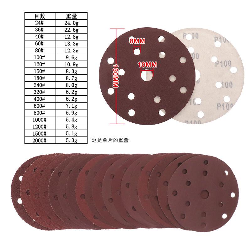 Back velvet disc red sand 6-inch 15-hole 24 mesh, Back velvet disc red sand 6-inch 15-hole 36 mesh, Back velve...