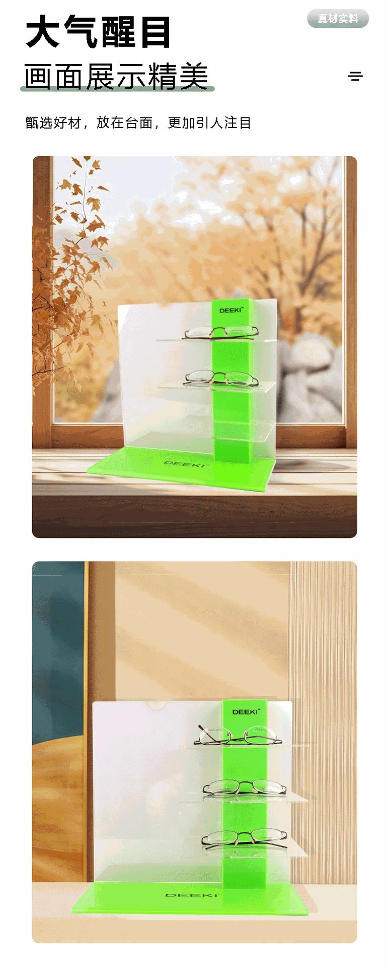 Estante de exhibición de gafas de sol acrílicas de tres capas, nuevo, de fábrica al por mayor, estante de exhibición de gafas de acrílico de tienda especializada