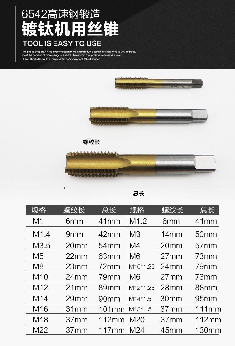 Macho de máquina titanio plateado 6542 acero de alta velocidad macho de máquina roscado acero inoxidable mano máquina alambre M1-M24