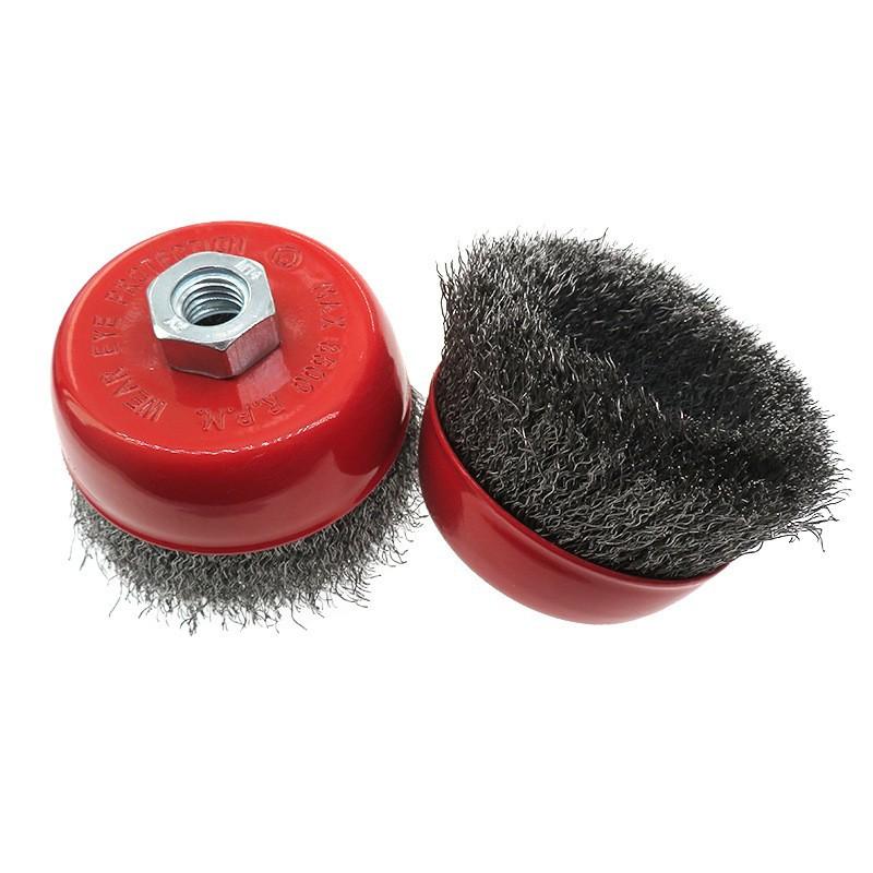 Cepillo de alambre curvo en forma de cuenco de acero inoxidable para la eliminación industrial de óxido de metal y descontaminación, cepillo de alambre para pulir, cepillo de alambre con rueda de alambre en forma de cuenco para eliminar óxido.
