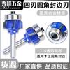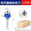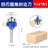 Cuchillo de esquina de cuatro hojas, cortador de bordes, máquina de recorte con mango de 1/4, herramienta de fresado para carpintería de pintura azul, 4 dientes R, recorte de arco de biselado