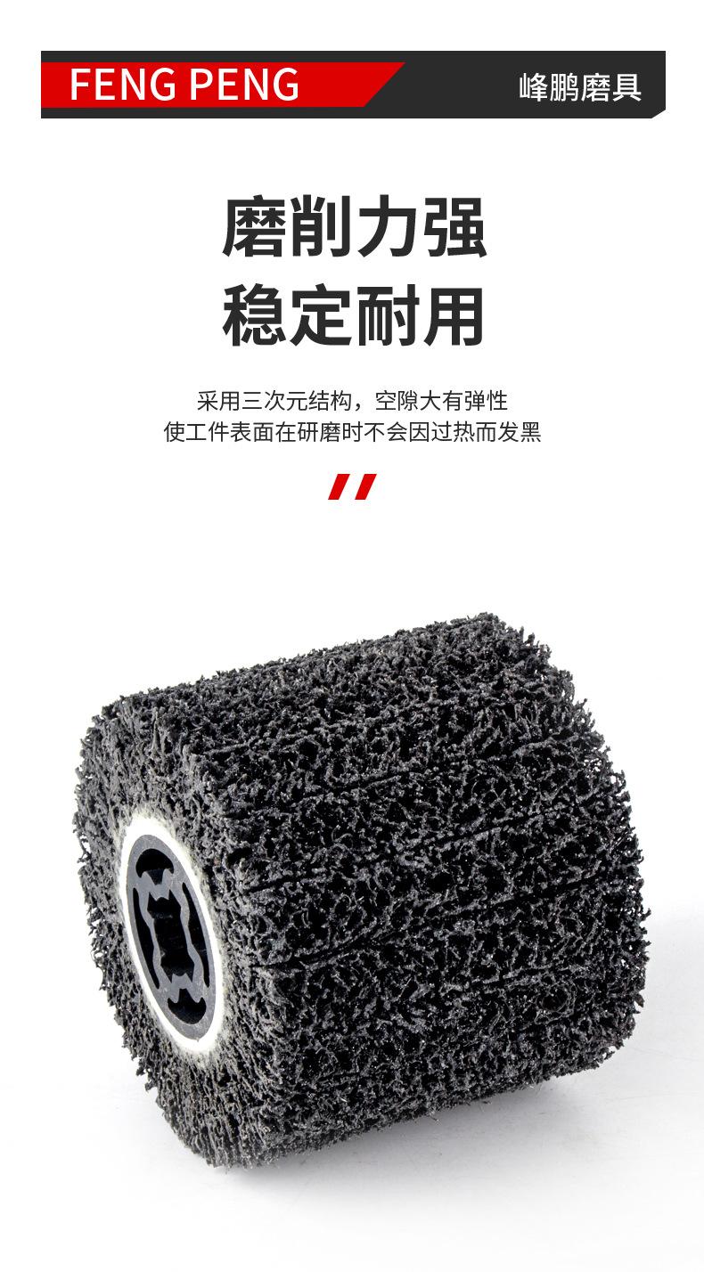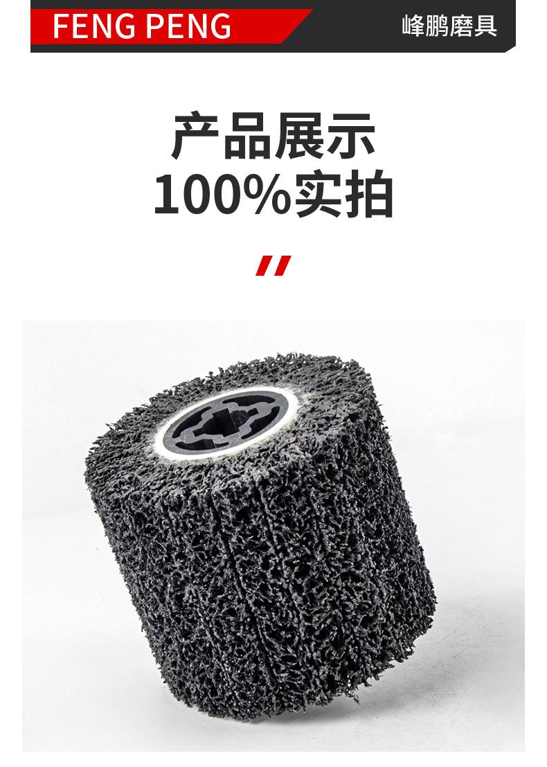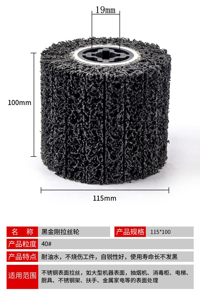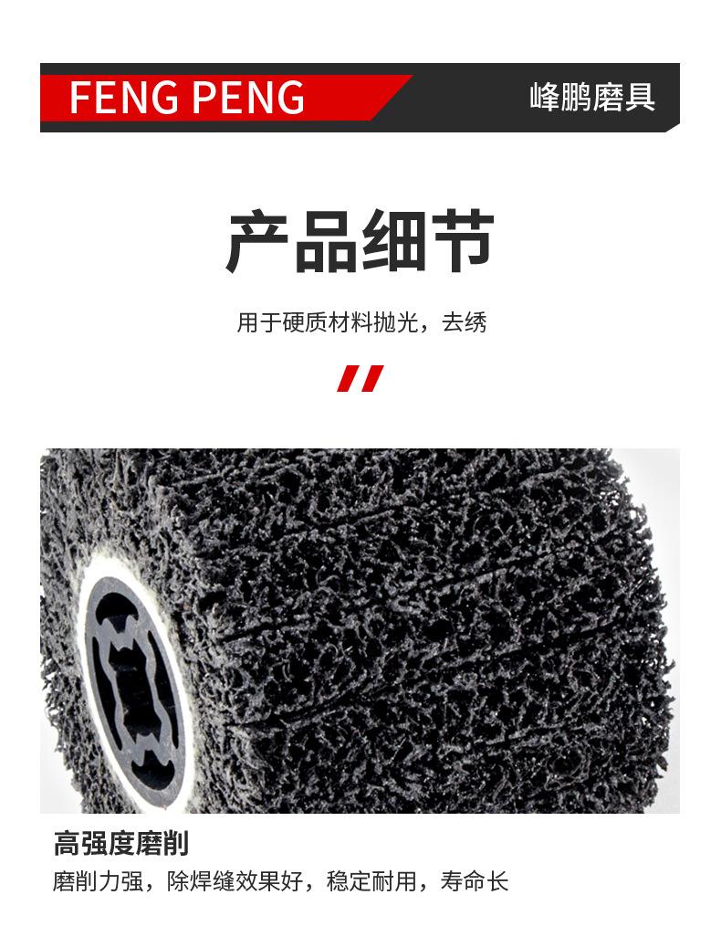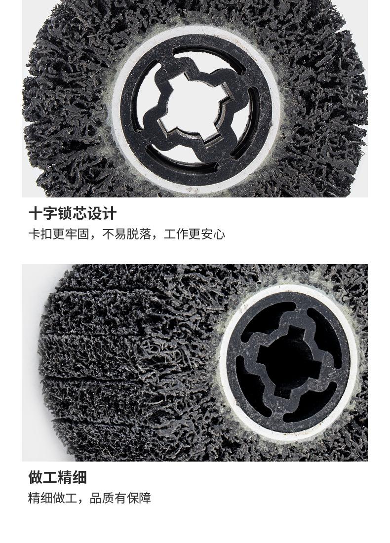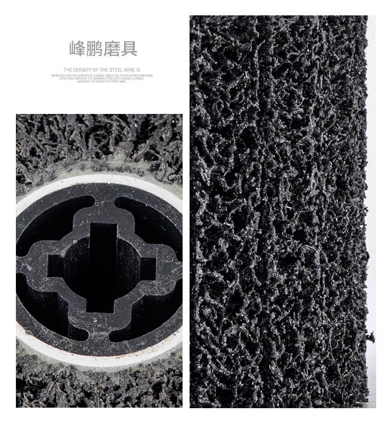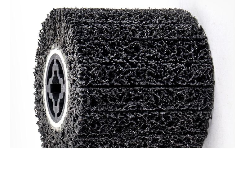 Se utiliza para eliminar pintura superficial, eliminar óxido superficial y limpiar el diámetro interior, el cordón de soldadura o la suciedad de las tuberías de acero. Limpiar la superficie antes de pintar o pintar metal para aumentar la adherencia, eliminar la capa recalcitrante de resina epoxi en la superficie de los puntos de soldadura o puntos adhesivos, pretratamiento para la inspección del cordón de soldadura, eliminar residuos de soldadura, abrillantar, modificar o pulir esquinas. La rueda superpuesta de diamante negro para la limpieza de puntos de soldadura se utiliza para eliminar rebabas. Es especialmente adecuada para la eliminación de juntas o suciedad en las juntas de diámetro de tubería. El espacio tridimensional de la rueda de diamante negro está hecho de fibra elástica y arena de esmeril. La superficie está libre de residuos y no daña la superficie de la pieza de trabajo.