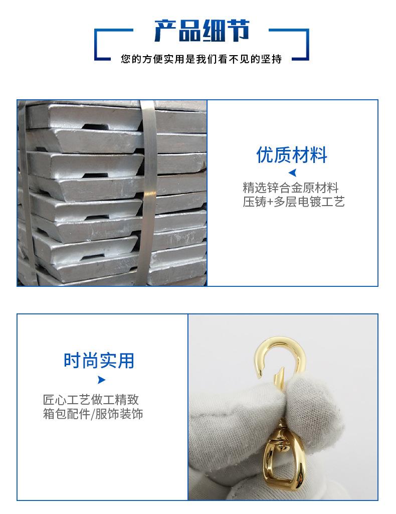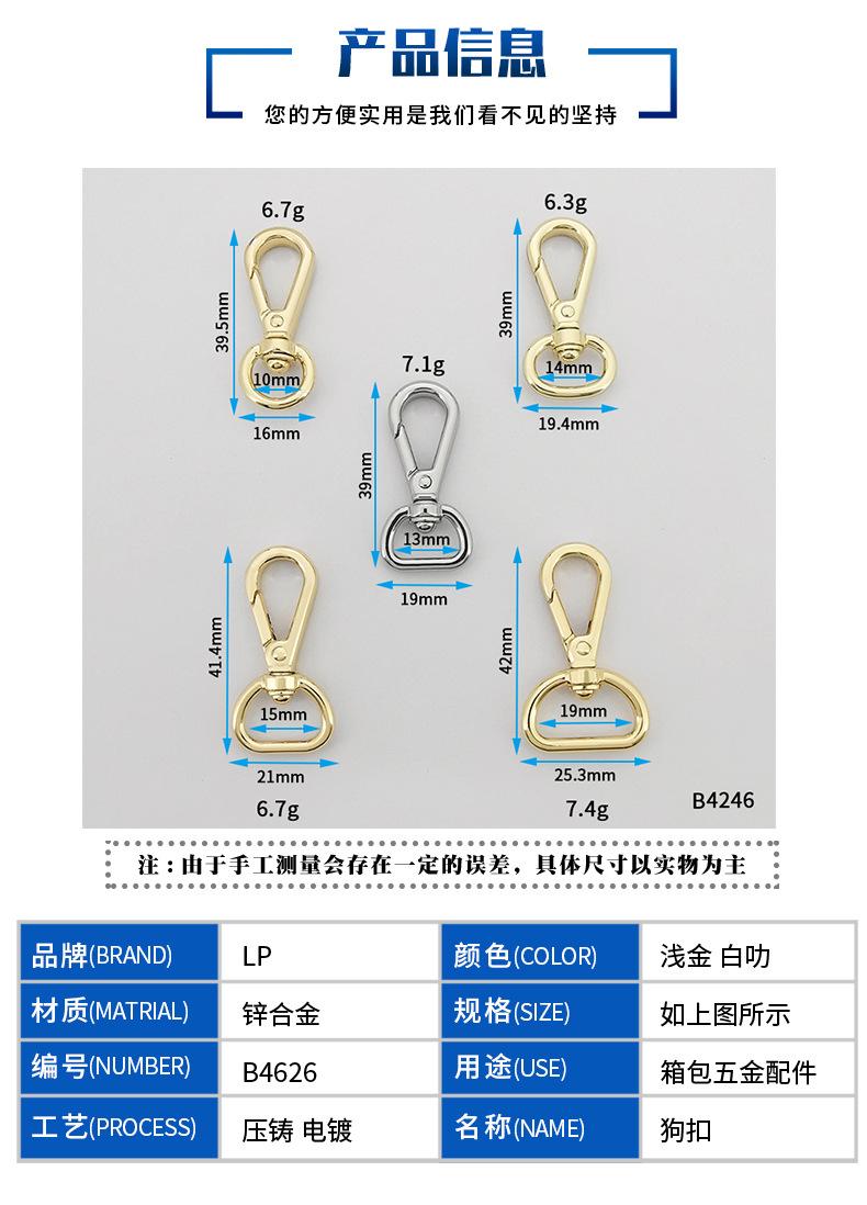 En stock, 3 hebillas de aleación de zinc para cachorros, para bolso interior, con gancho, placa de hebilla, accesorios de hardware para equipaje, hebilla de gancho de metal dorado claro.