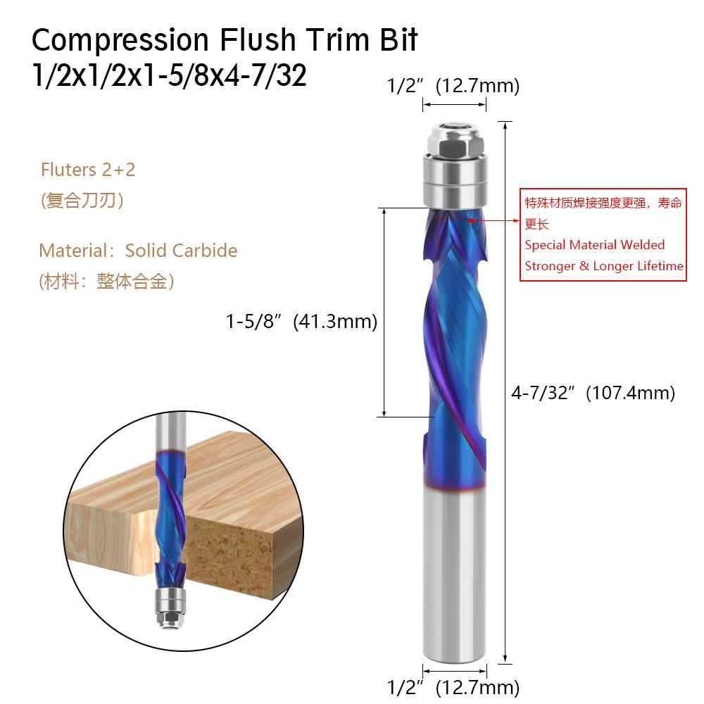 Cortador de rebabado azul con mango 1/2 integral de aleación nanoplacado cortador de fresado de grabado transfronterizo fresa de carburo