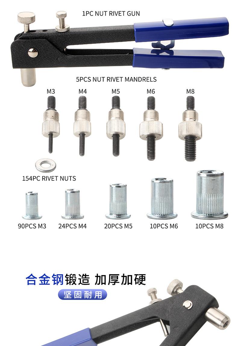 Juego de remachadora manual tuerca de inserción 86 piezas pistola de tapón 160 piezas remachadora manual juego de remachadora
