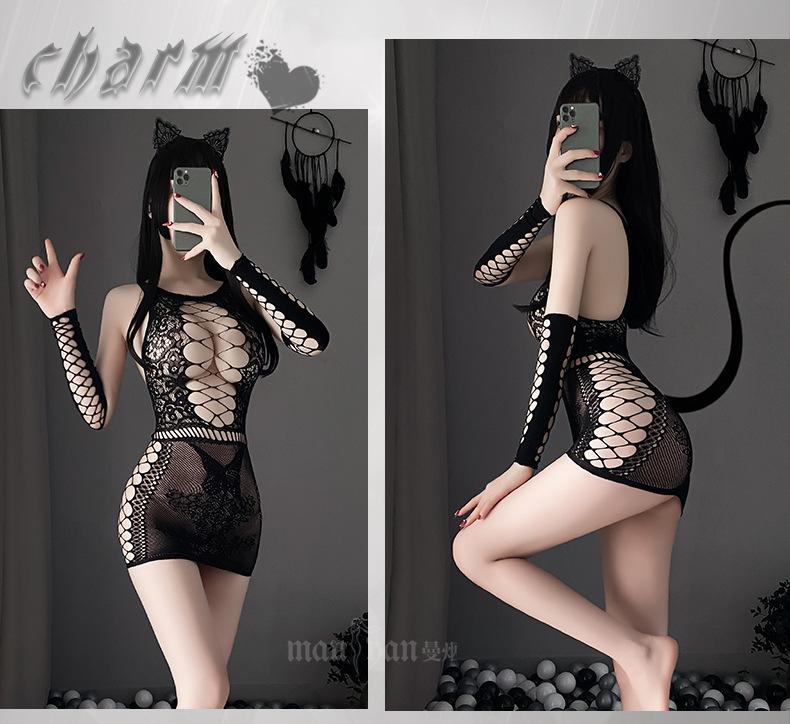 Ropa interior sexy de malla hueca para cadera sexy uniforme de cheongsam de red de pesca una generación de 7177