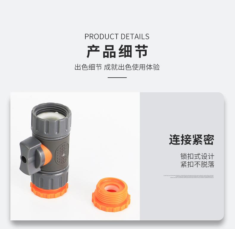 Válvula recta dos cabezales dientes internos herramienta de conexión de válvula recta interruptor ajustable ahorro de agua flujo de agua controlable doble cabezal