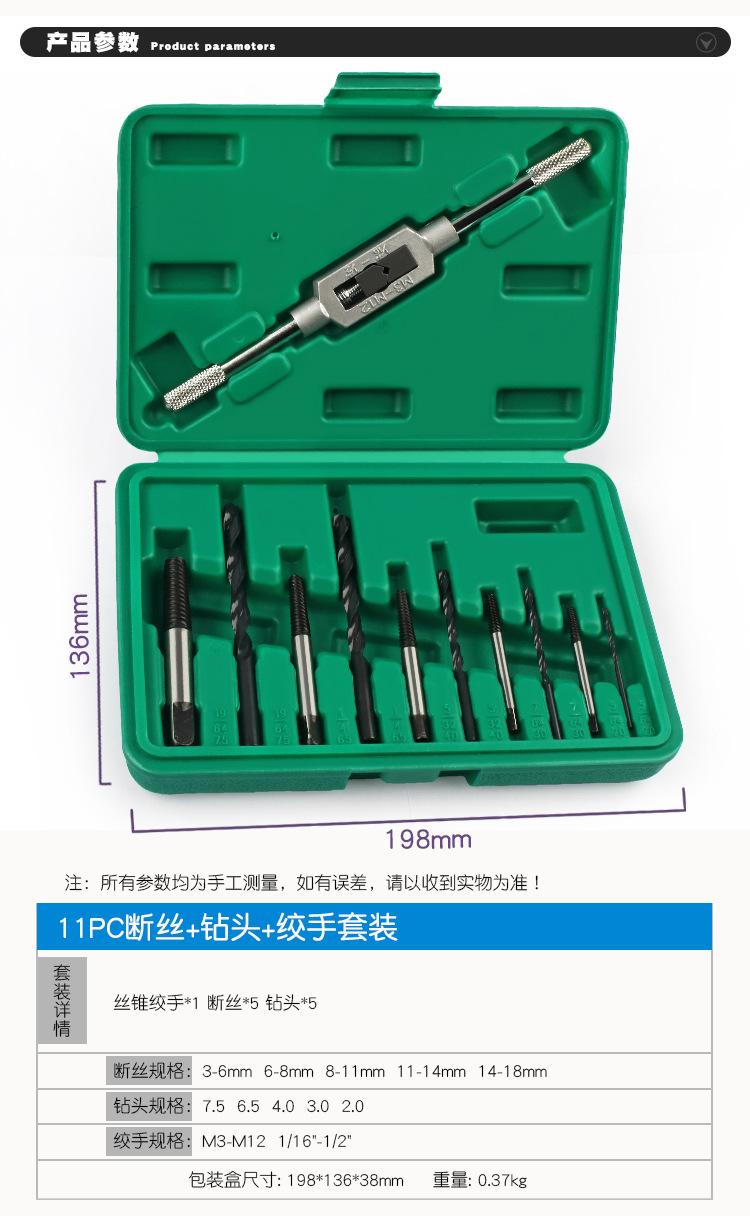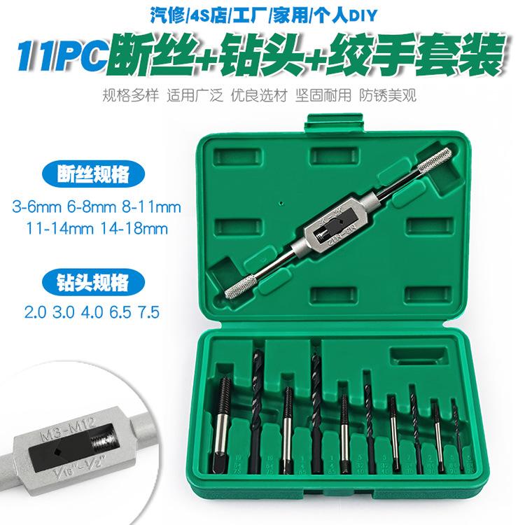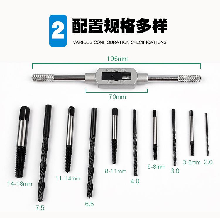 Juego de 11 piezas de extractor de machos de roscar para alambre roto, broca helicoidal, extractor de tornillos de cabeza rota, macho de roscar, terraja, llave de machos