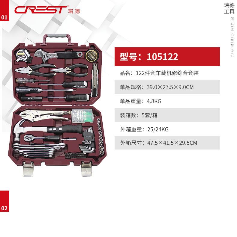 Caja de herramientas roja para el hogar, juego de herramientas multifunción para el mantenimiento diario familiar, 122 piezas, venta al por mayor