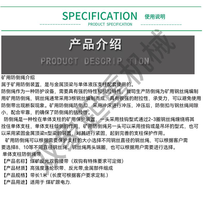 Cinturón de elevación con cuerda antirretroceso reflectante para protección de cintura, mina de carbón, gancho doble, pilar hidráulico simple, gancho doble, cuerda antirretroceso para mina de 1,5 m