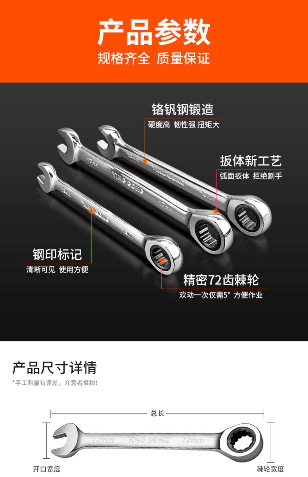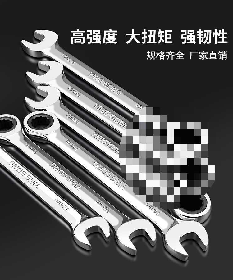 Llave de trinquete de dos vías, adecuada para pequeñas herramientas de llave rápida, llave de boca universal multifuncional de doble propósito con flor de ciruelo Daquan