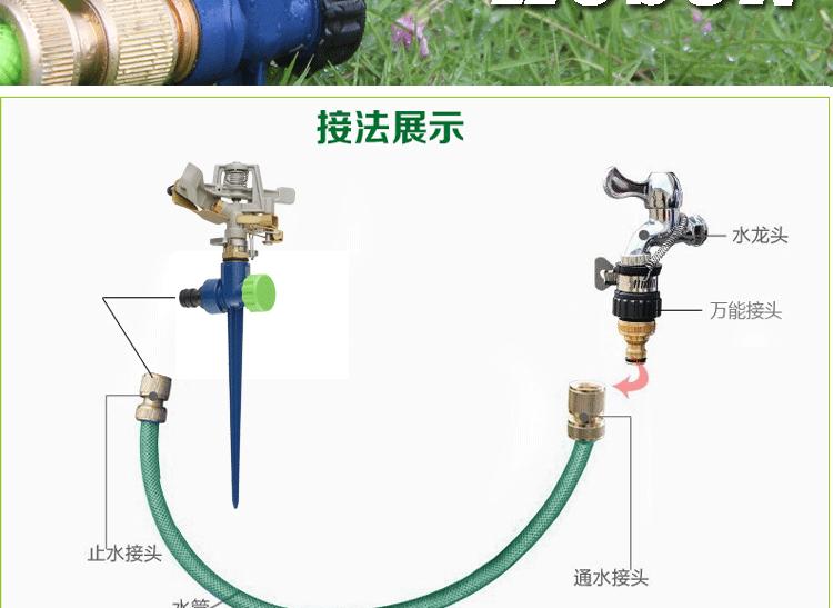Un 4 puntosAspersor basculante de cobre+Enchufe de tierra de aleación de zincPor favor, ordene otros accesorios por separado.