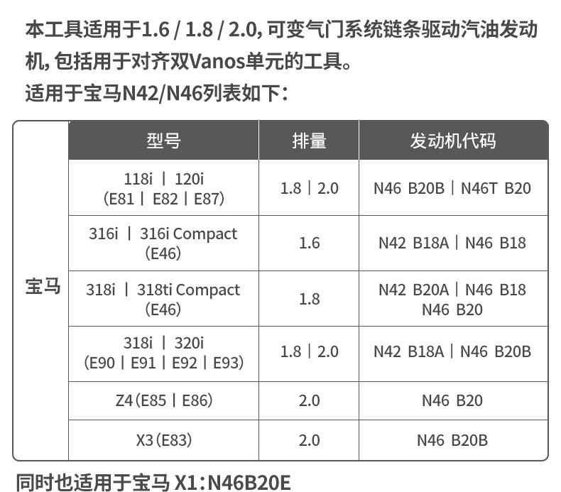 Herramienta de sincronización del motor BMW BMW E90 N42 N46 x 1 Herramienta de resorte de sincronización 320I 318i