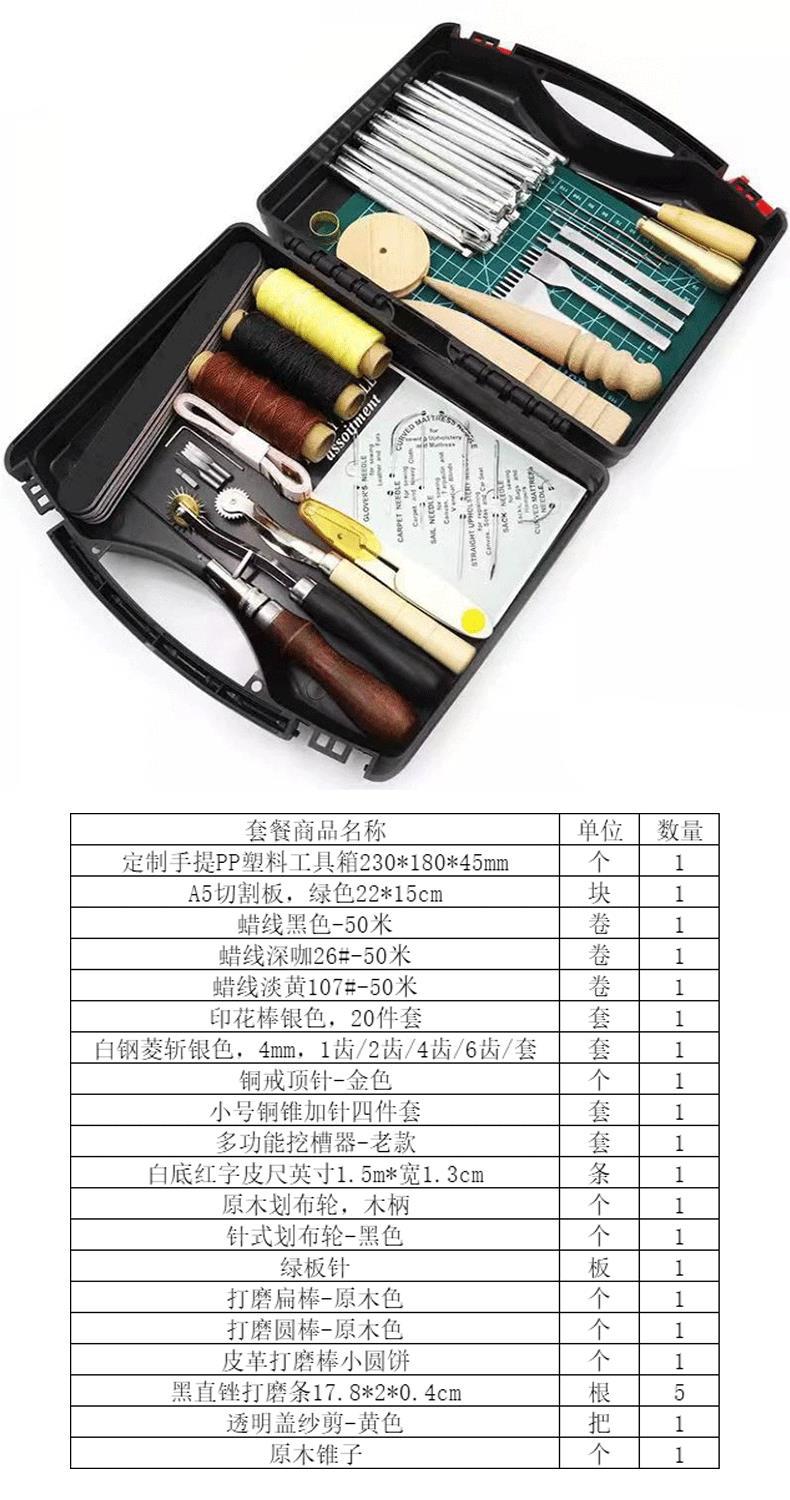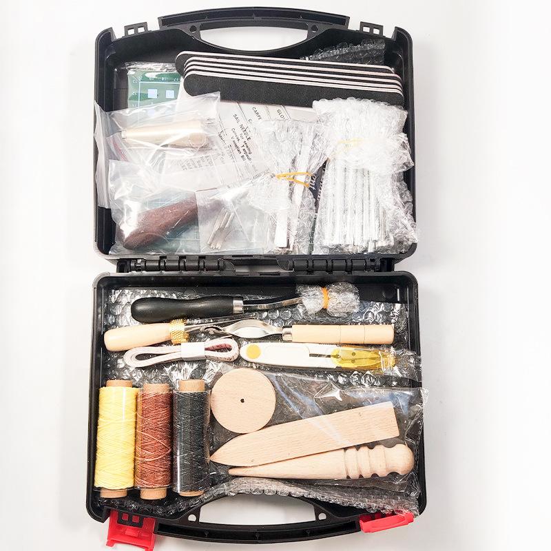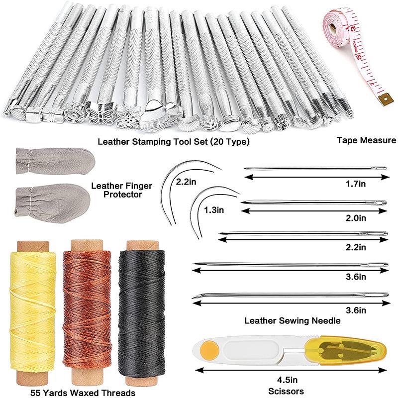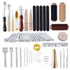 Juego de 59 herramientas de cuero, 59 piezas, juego de cuero cosido a mano, juego de bricolaje hecho a mano, combinación de arte de cuero hecho a mano