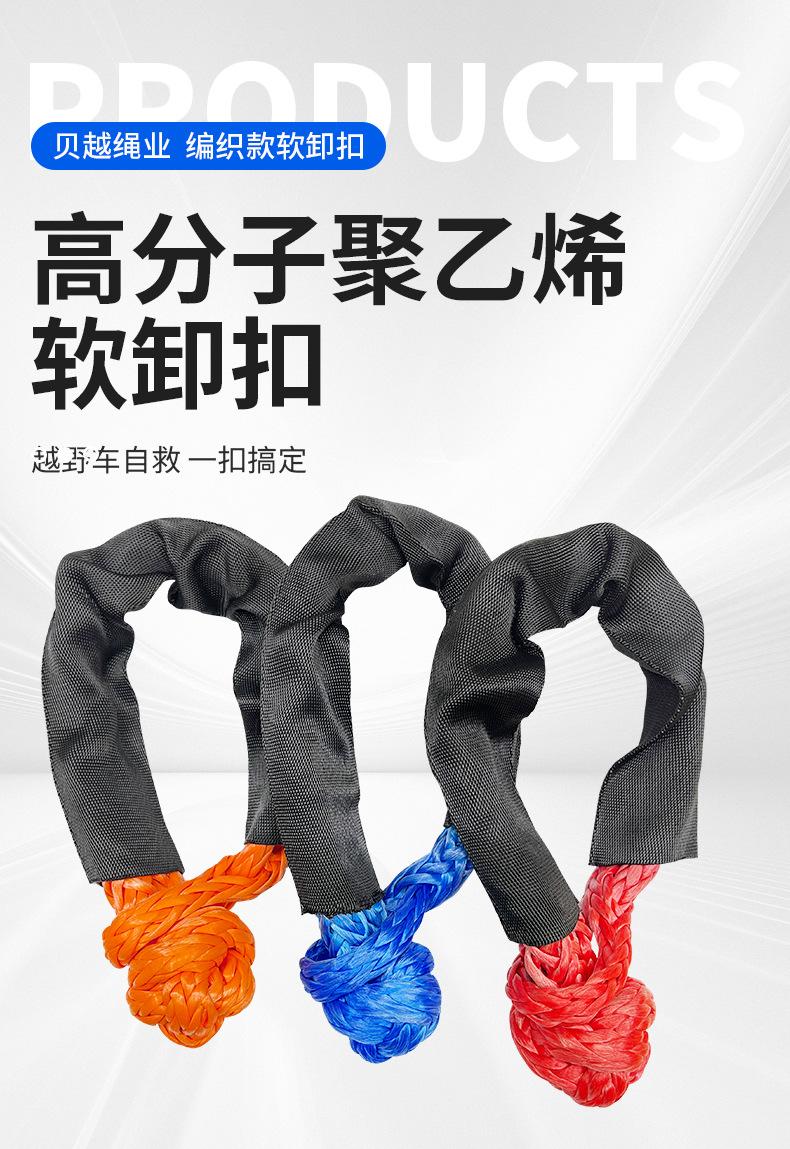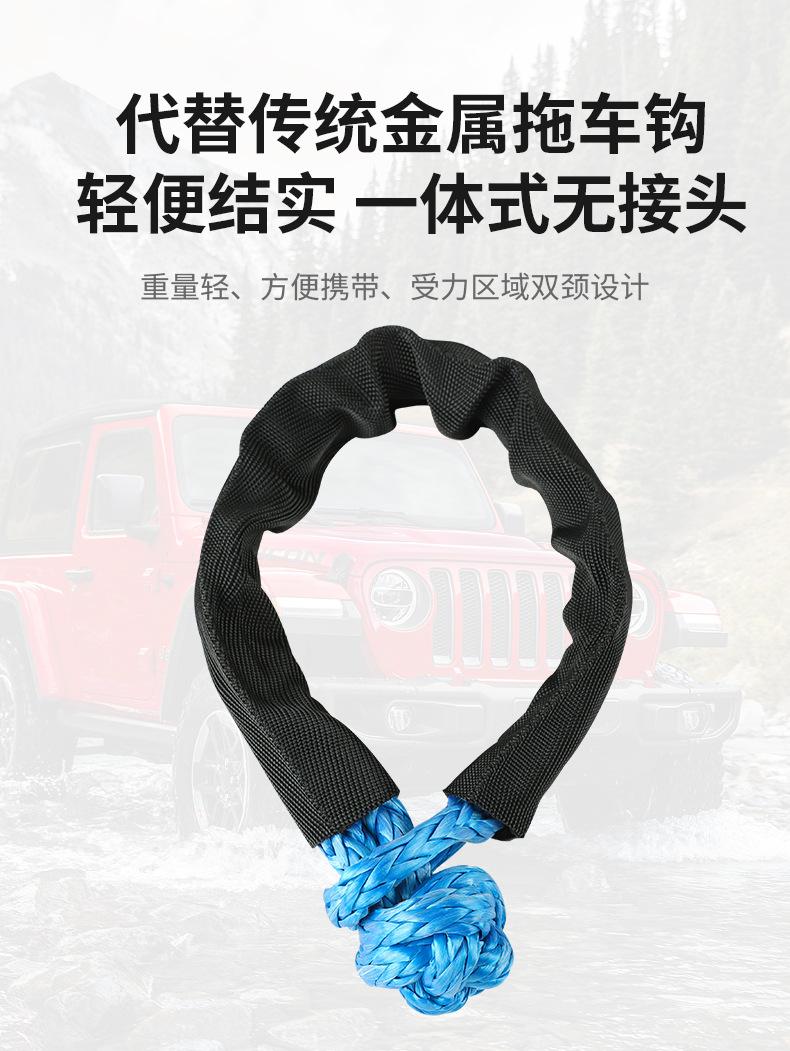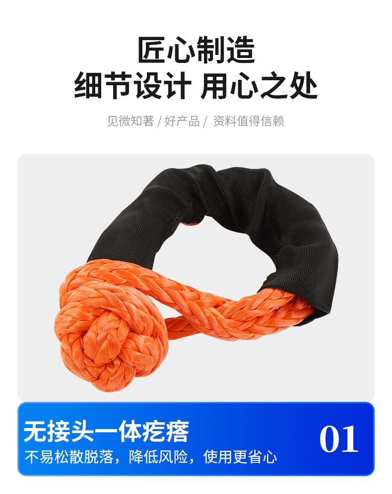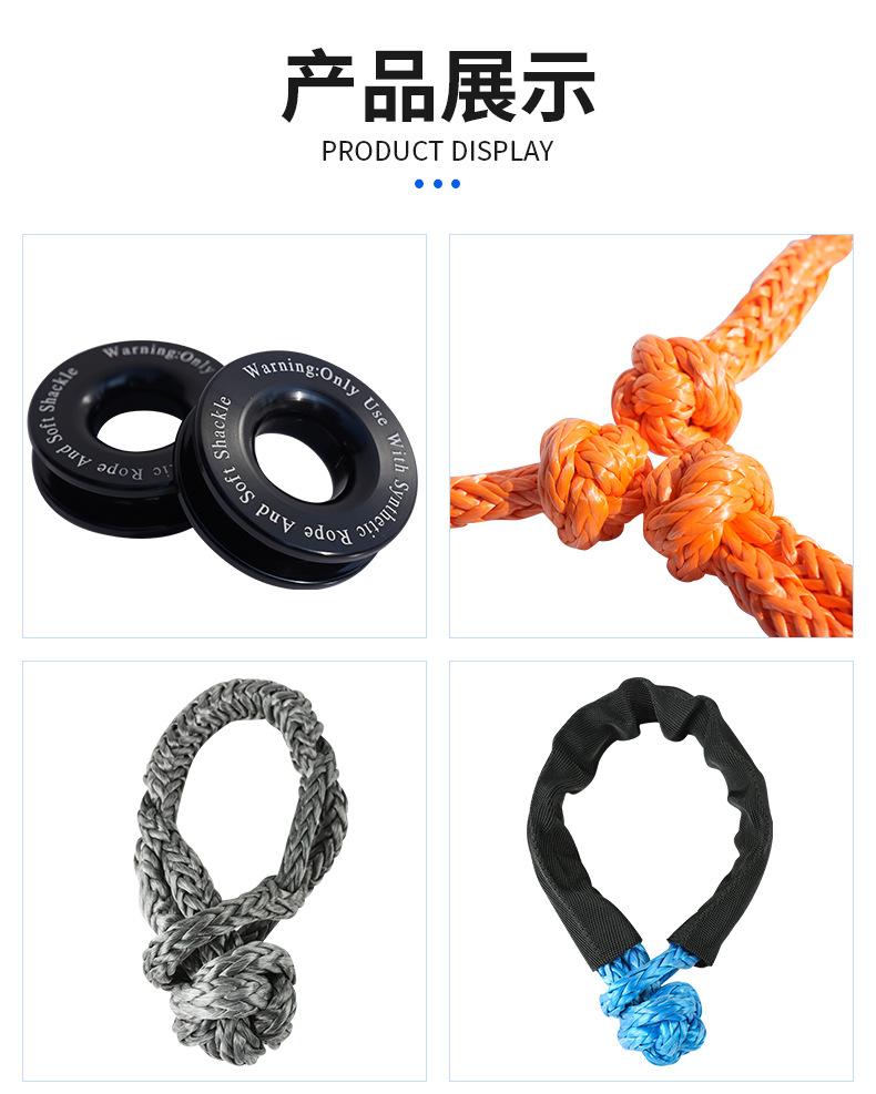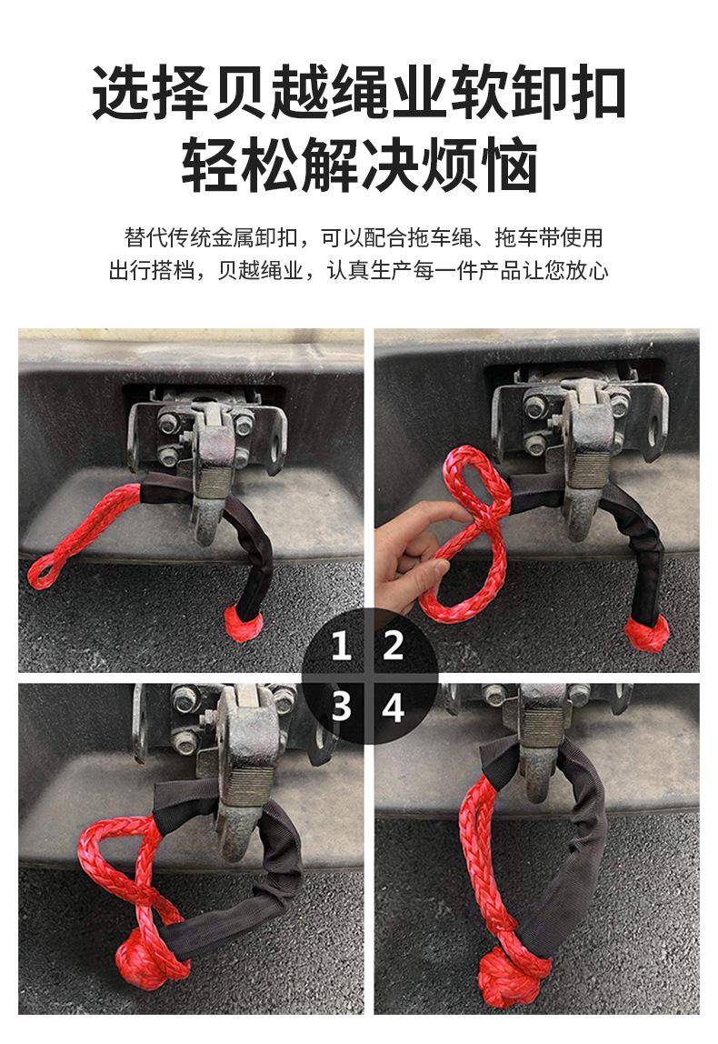 Cuerda de nudo de polietileno de polímero de 17 toneladas para exteriores, grillete blando para rescate todoterreno, grillete de remolque