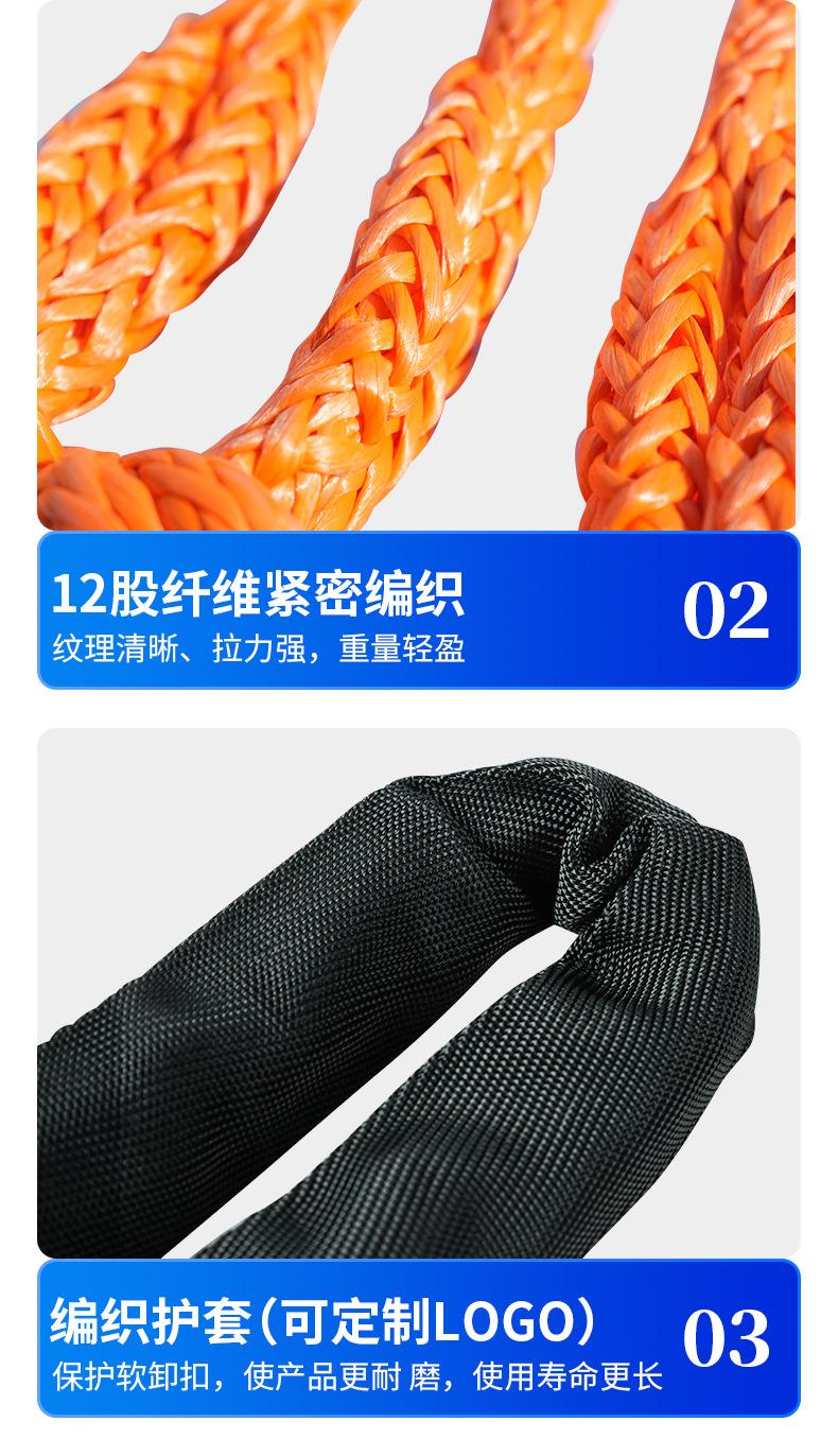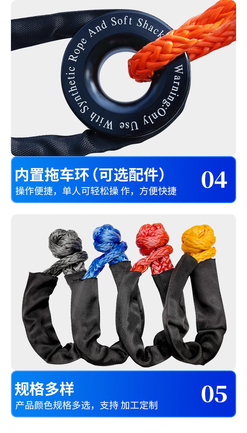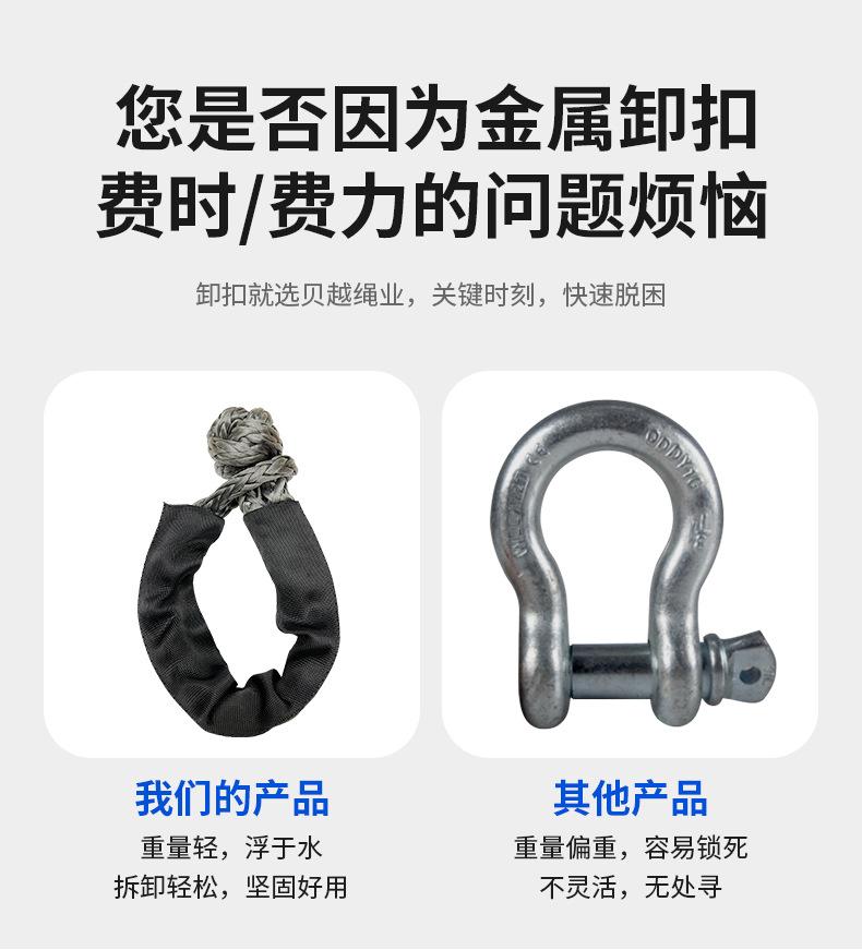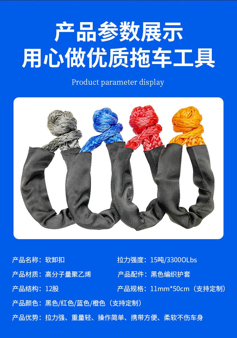 Cuerda de nudo de polietileno de polímero de 17 toneladas para exteriores, grillete blando para rescate todoterreno, grillete de remolque