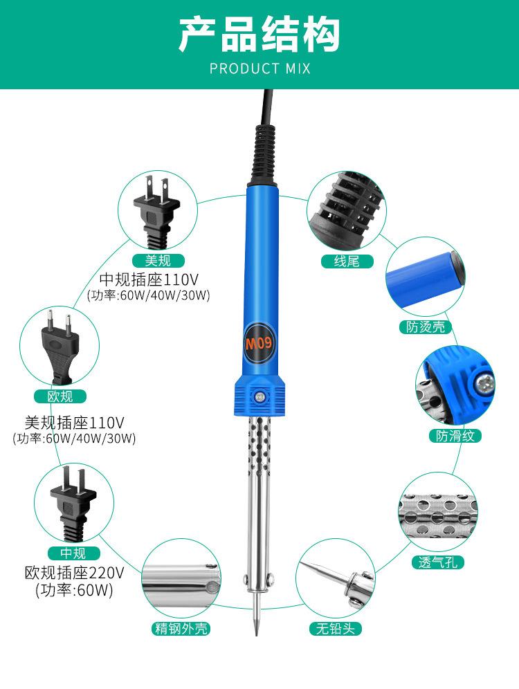 Soldador eléctrico de calefacción externa transfronterizo, apto para uso doméstico, 60 W, mantenimiento de soldador eléctrico, juego completo de herramientas de soldador, venta al por mayor
