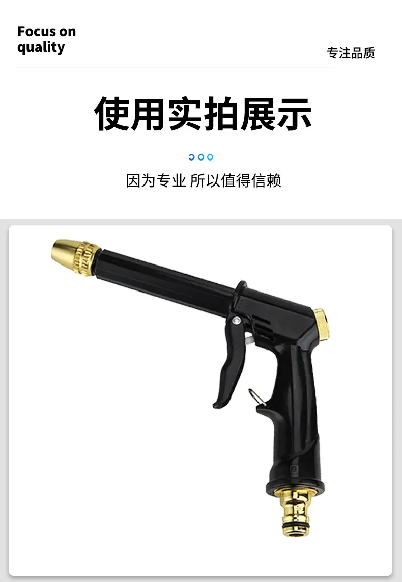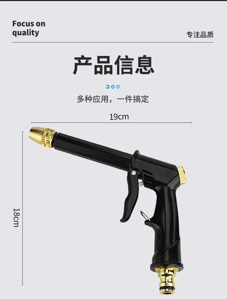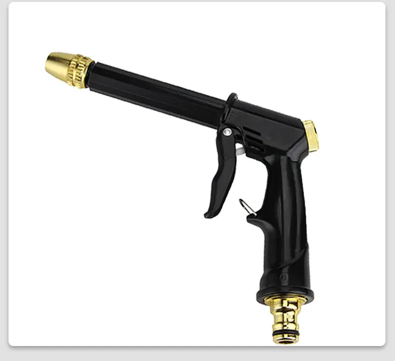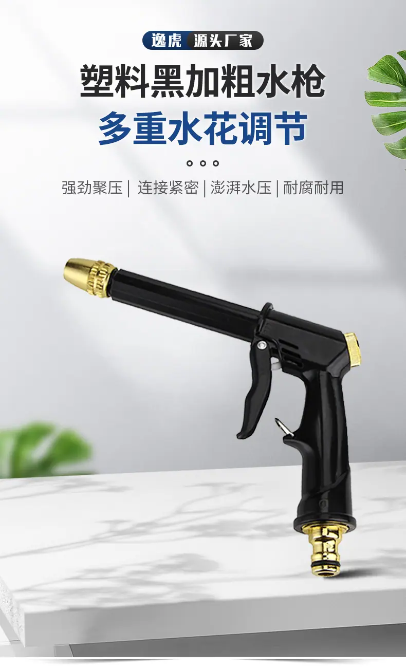 Suministro de fábrica, pistola de agua de lavado de autos de plástico negro con varilla en negrita, herramienta de limpieza de riego para el hogar, boquilla chapada en cobre