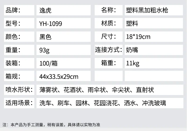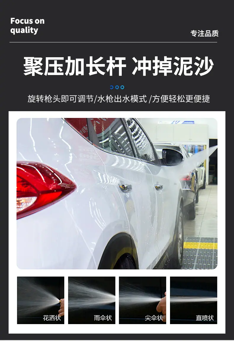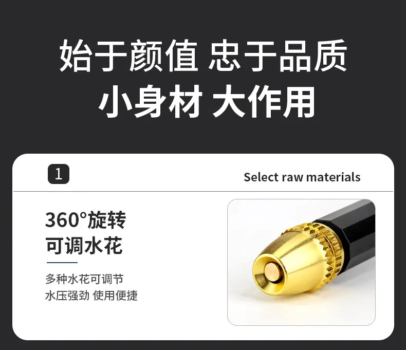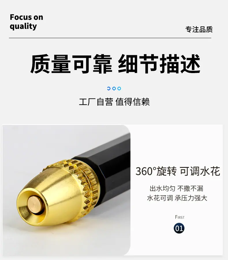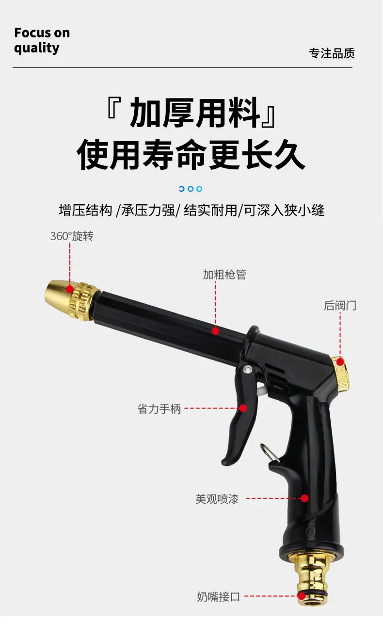 Suministro de fábrica, pistola de agua de lavado de autos de plástico negro con varilla en negrita, herramienta de limpieza de riego para el hogar, boquilla chapada en cobre
