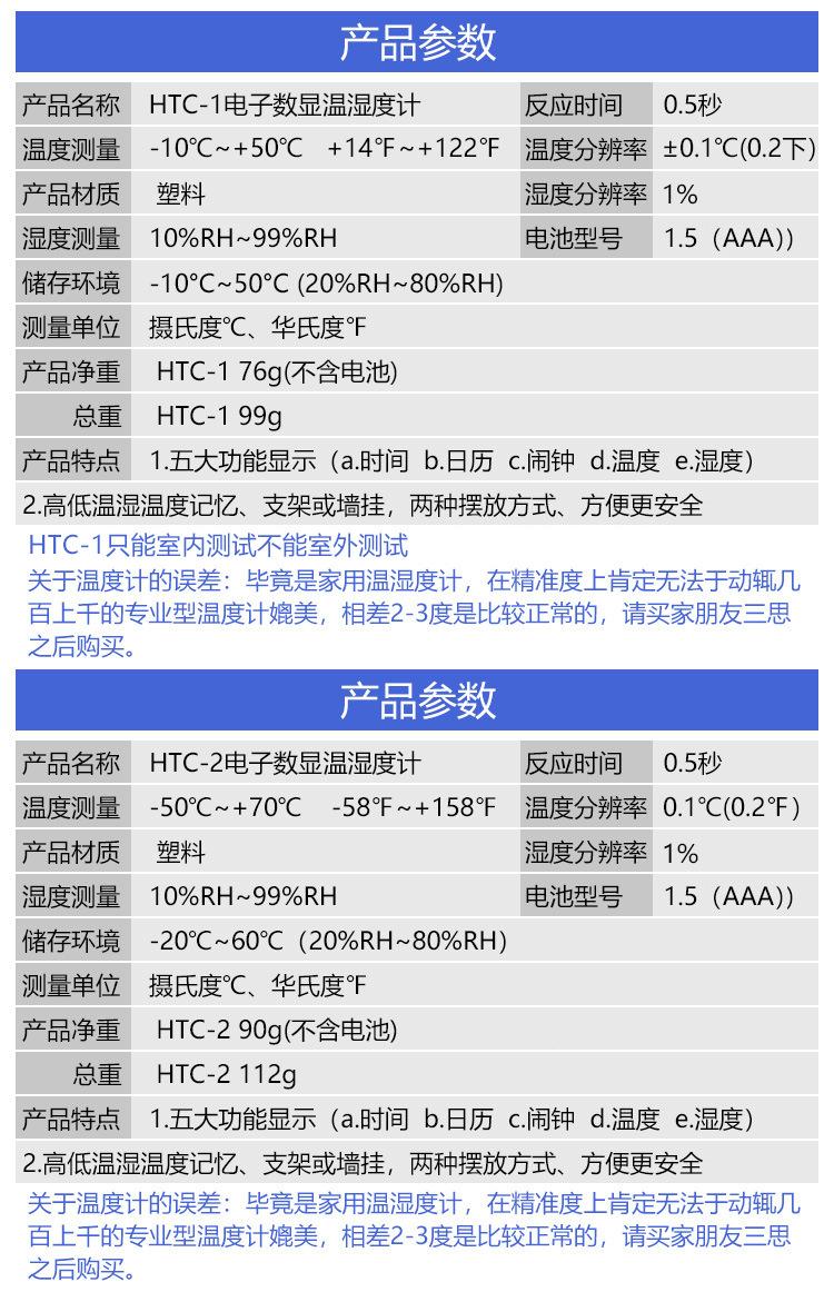 HTC-1 temperature and humidity meter (with 1 battery), HTC-2 temperature and humidity meter (with 1 battery)
