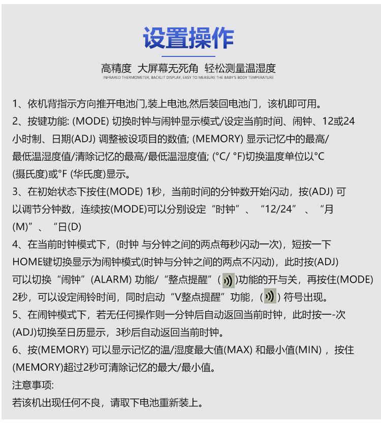 Termómetro doméstico de pantalla grande, termohigrómetro, termómetro electrónico de alta precisión para interiores HTC-1 con despertador.