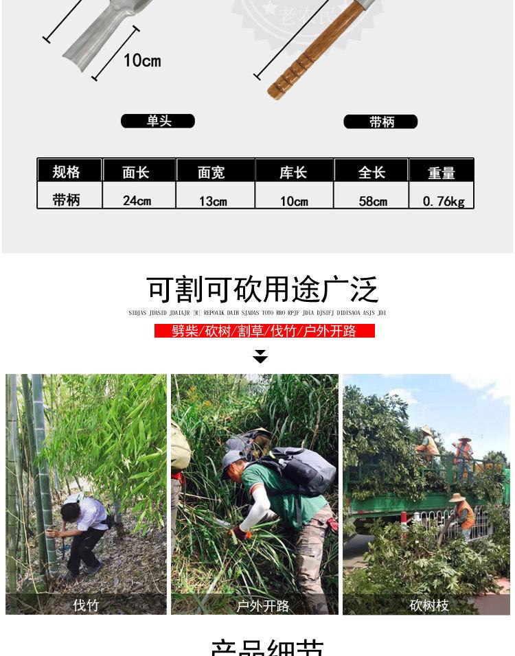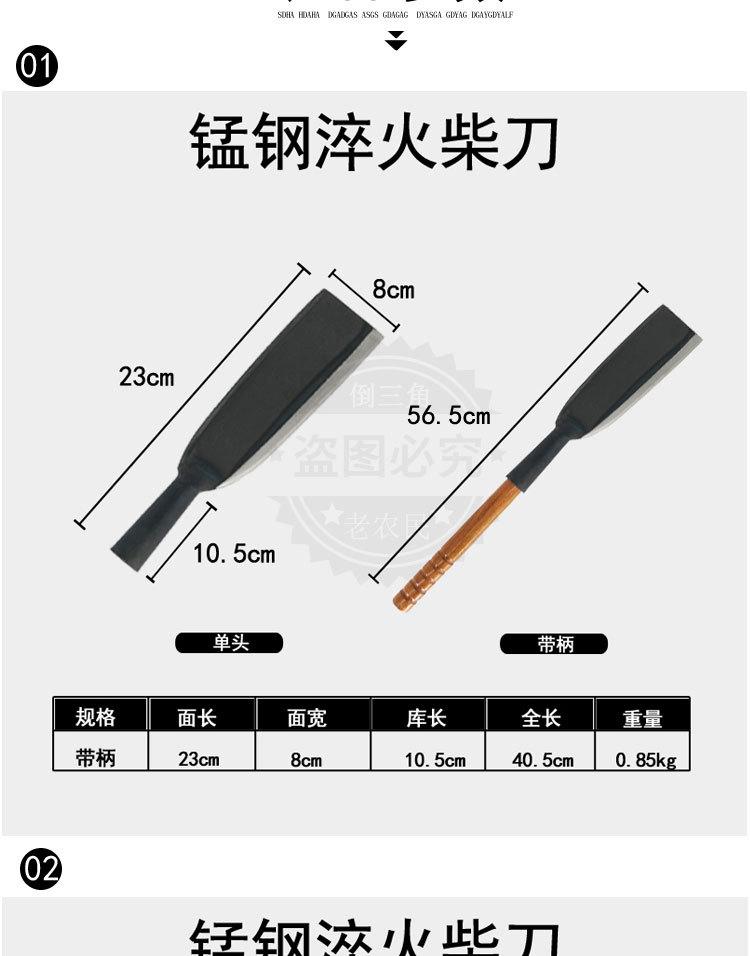 Manganese steel quenching wood knife (black single head), Manganese steel quenching scimitar (black single hea...