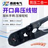 Alicates de punta abierta para crimpar terminales de cobre, alicates multifuncionales para procesos eléctricos.
