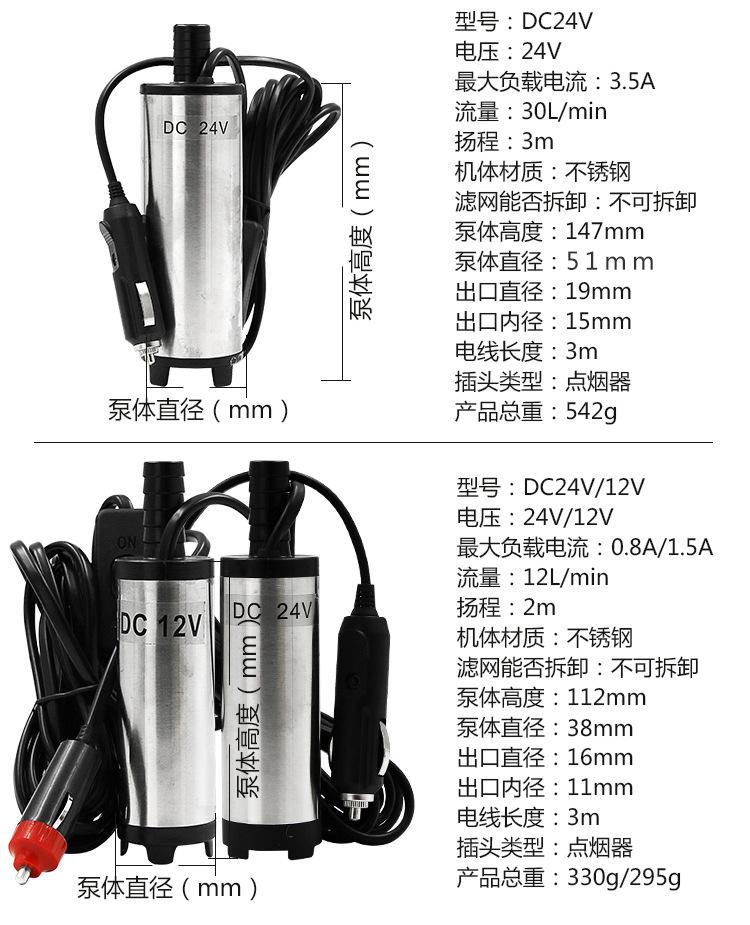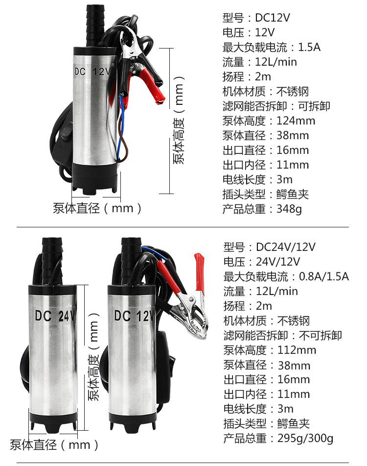 Bomba de aceite de 12 V, bomba de aceite eléctrica, diésel, 24 V CC, cisterna, pequeña bomba de succión de aceite sumergible.