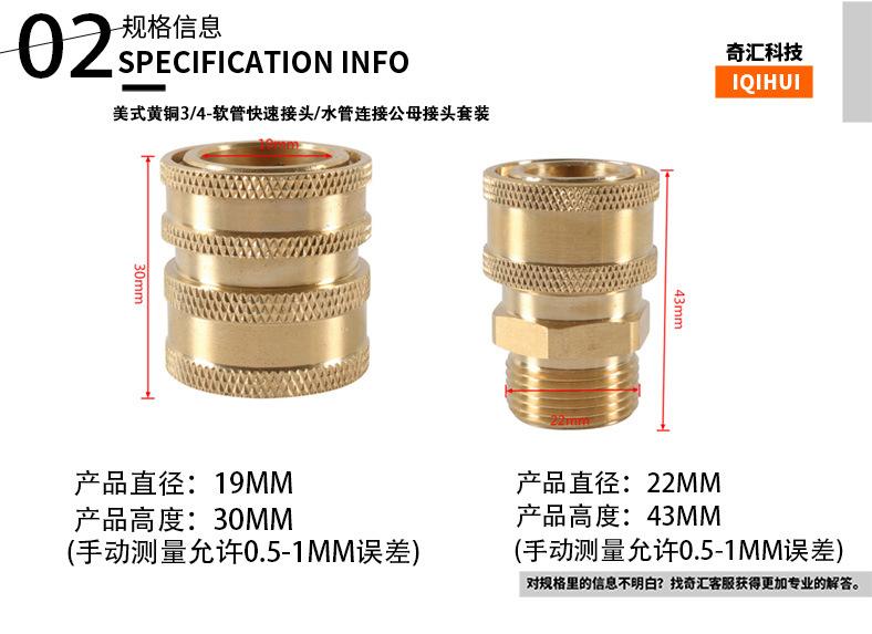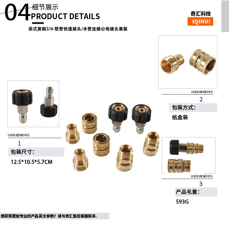 American Brass 3/4 Conector Rápido para Manguera Conexión de Tubería de Agua de Jardín Conector Macho y Hembra Accesorios Conector Rápido de 6 Puntos