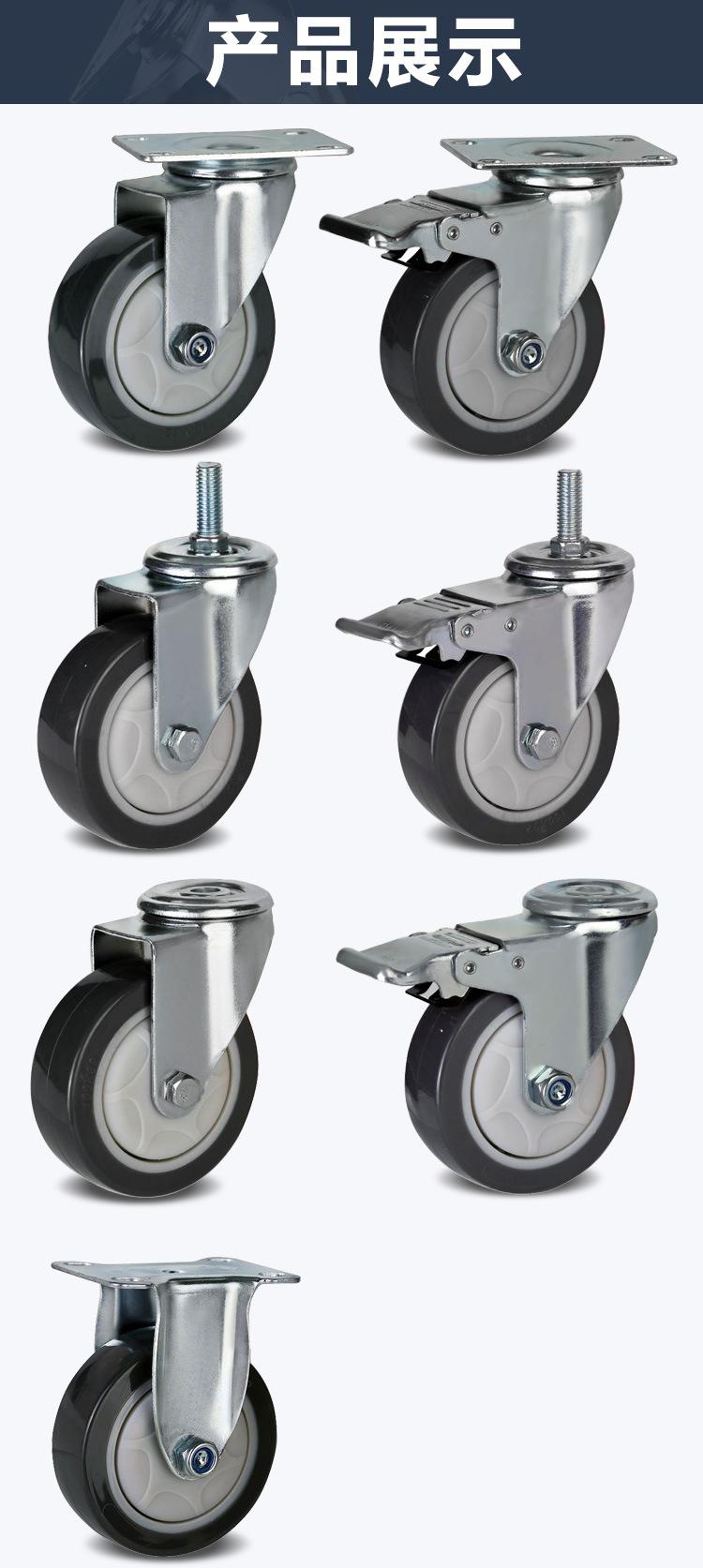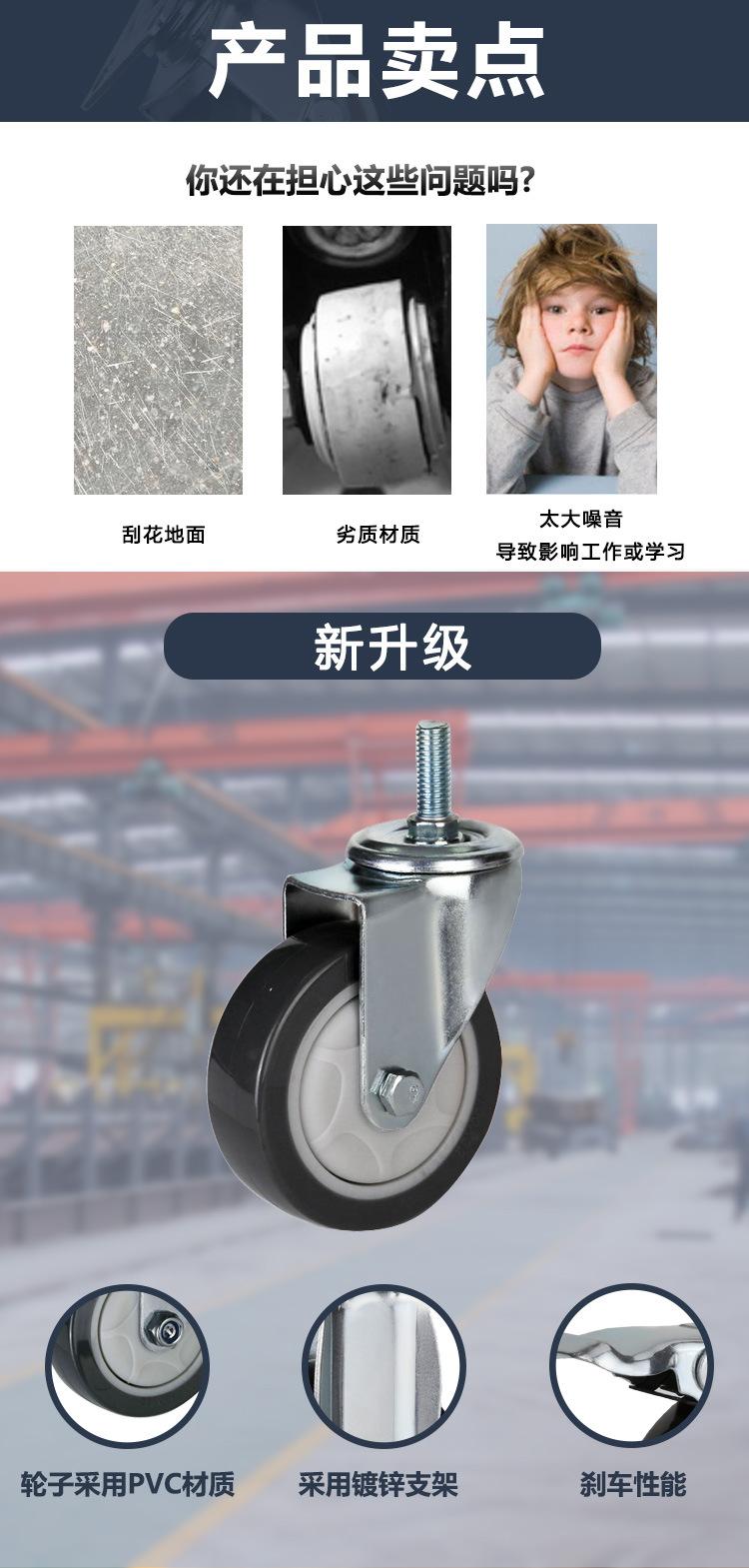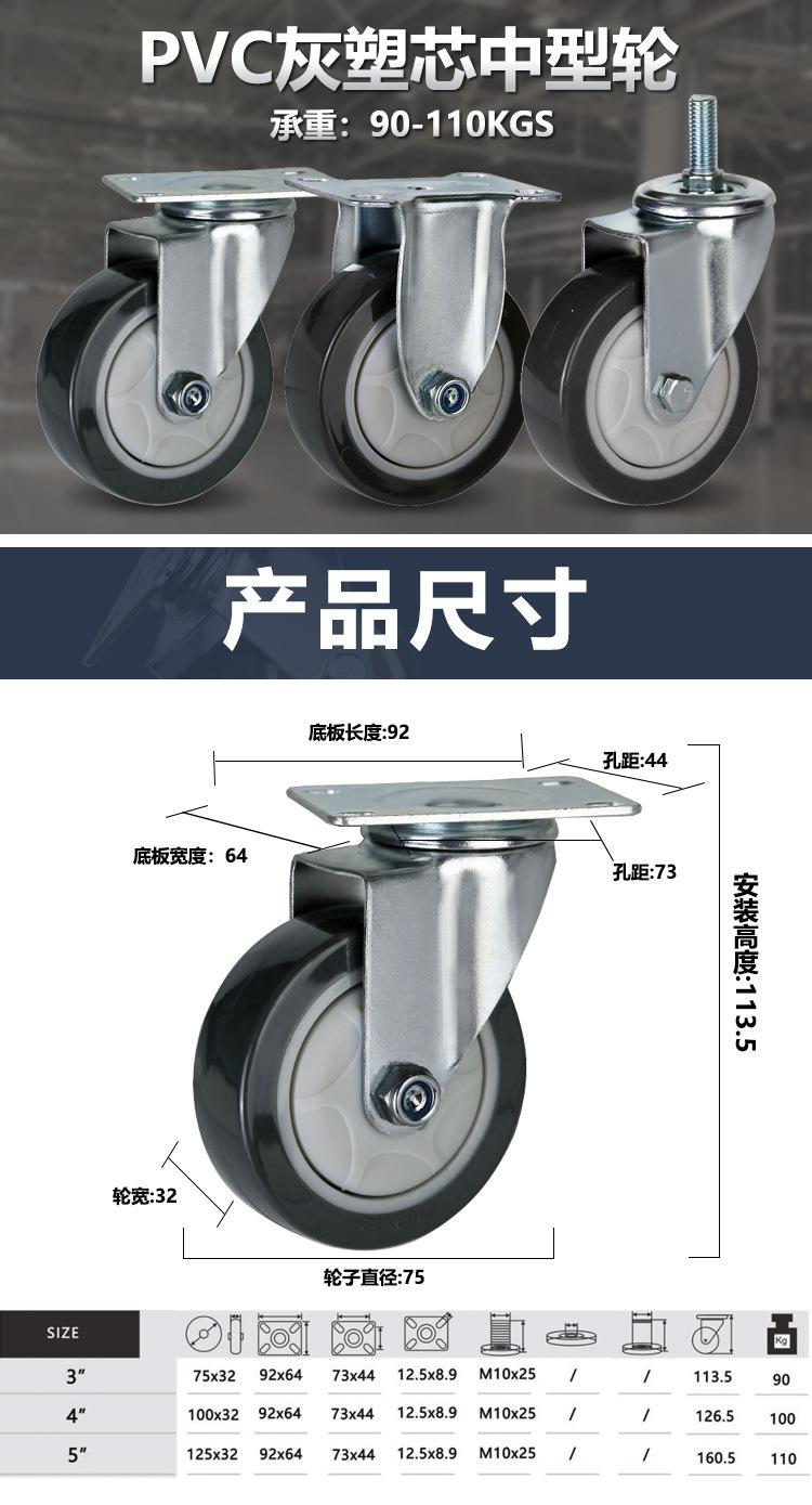 Rueda mediana de PVC de 3, 4 y 5 pulgadas, silenciosa, antienrollable, con soporte eléctrico, universal para muebles.