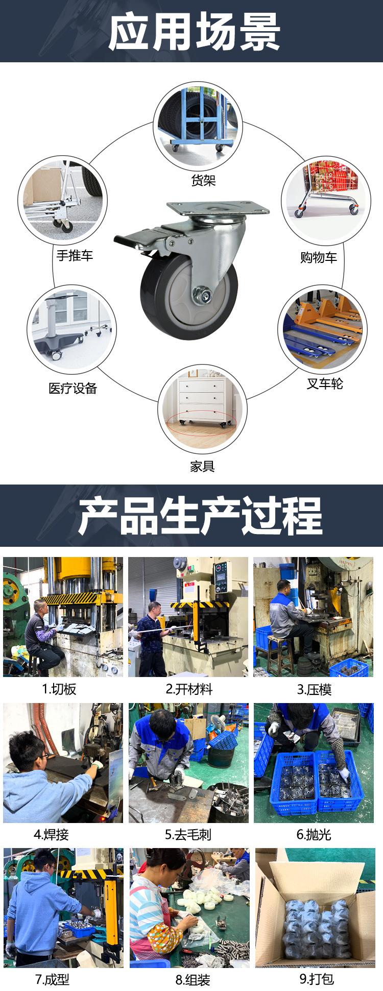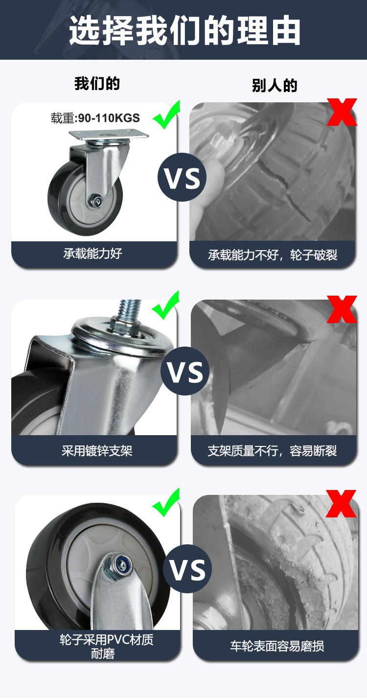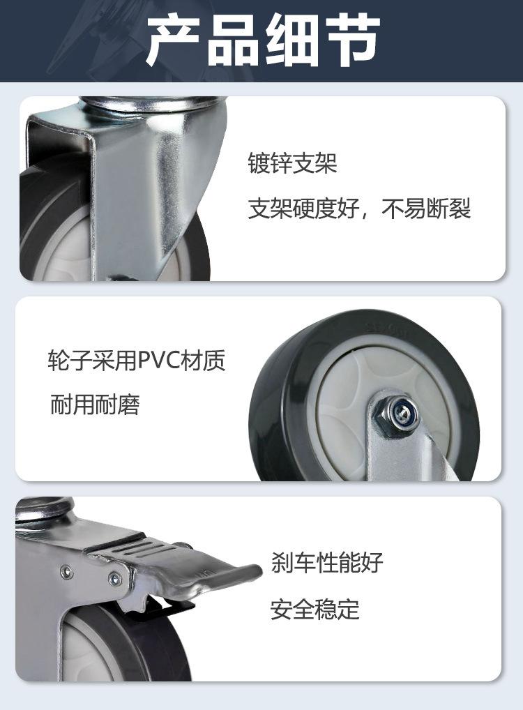 Rueda mediana de PVC de 3, 4 y 5 pulgadas, silenciosa, antienrollable, con soporte eléctrico, universal para muebles.