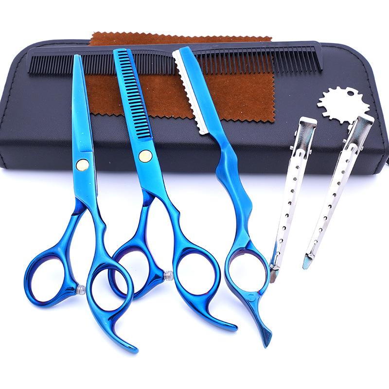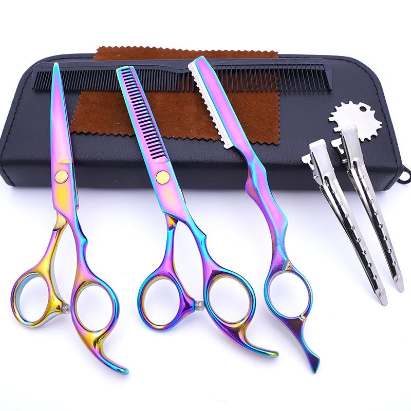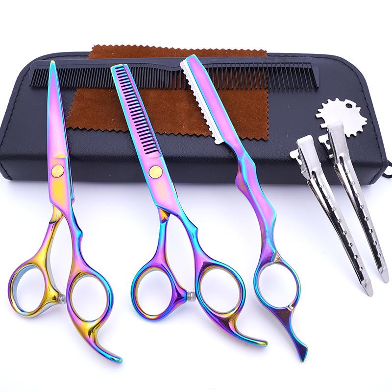 Tijeras de Peluquería Acero Inoxidable 6 pulgadas Juego de Cuchillo para Corte de Cabello Colorido Tijeras de Entresacar Tijeras de Peluquería Profesionales