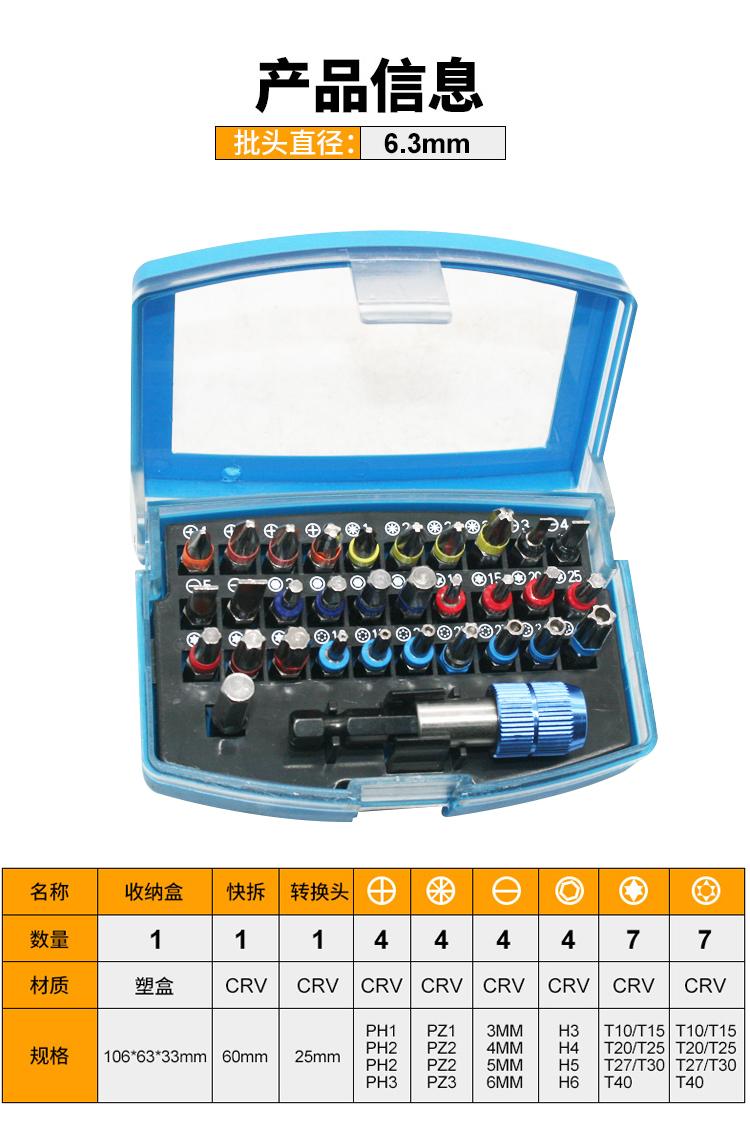 Destornillador eléctrico de color original, cabeza de destornillador, destornillador hexagonal de una palabra, juego de 32 piezas