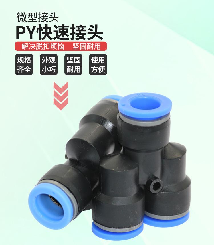 Conector rápido neumático tipo Y, conector rápido en T para tubería de gas, conector de manguera PY4/6/8/10/12/14/16