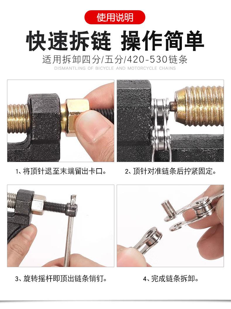 Cortador de cadena para bicicleta de montaña, motocicleta y coche, extractor de cadena de cuatro puntos 420 y cinco puntos 530, herramienta de mantenimiento para extracción de cadena