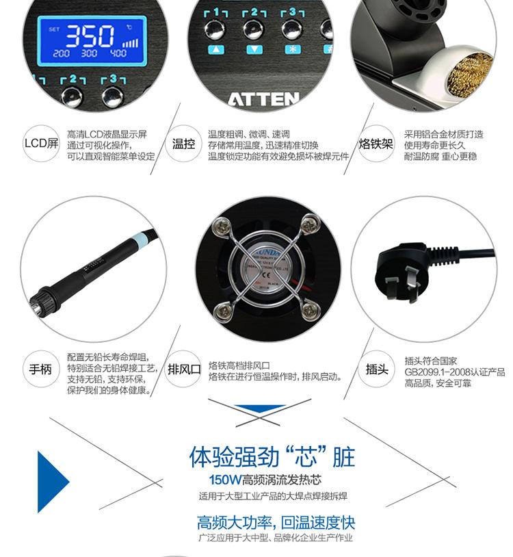 Estación de soldadura eléctrica de alta potencia Antaixin AT315DH de 150 W con pantalla digital antiestática y temperatura constante de alta frecuencia