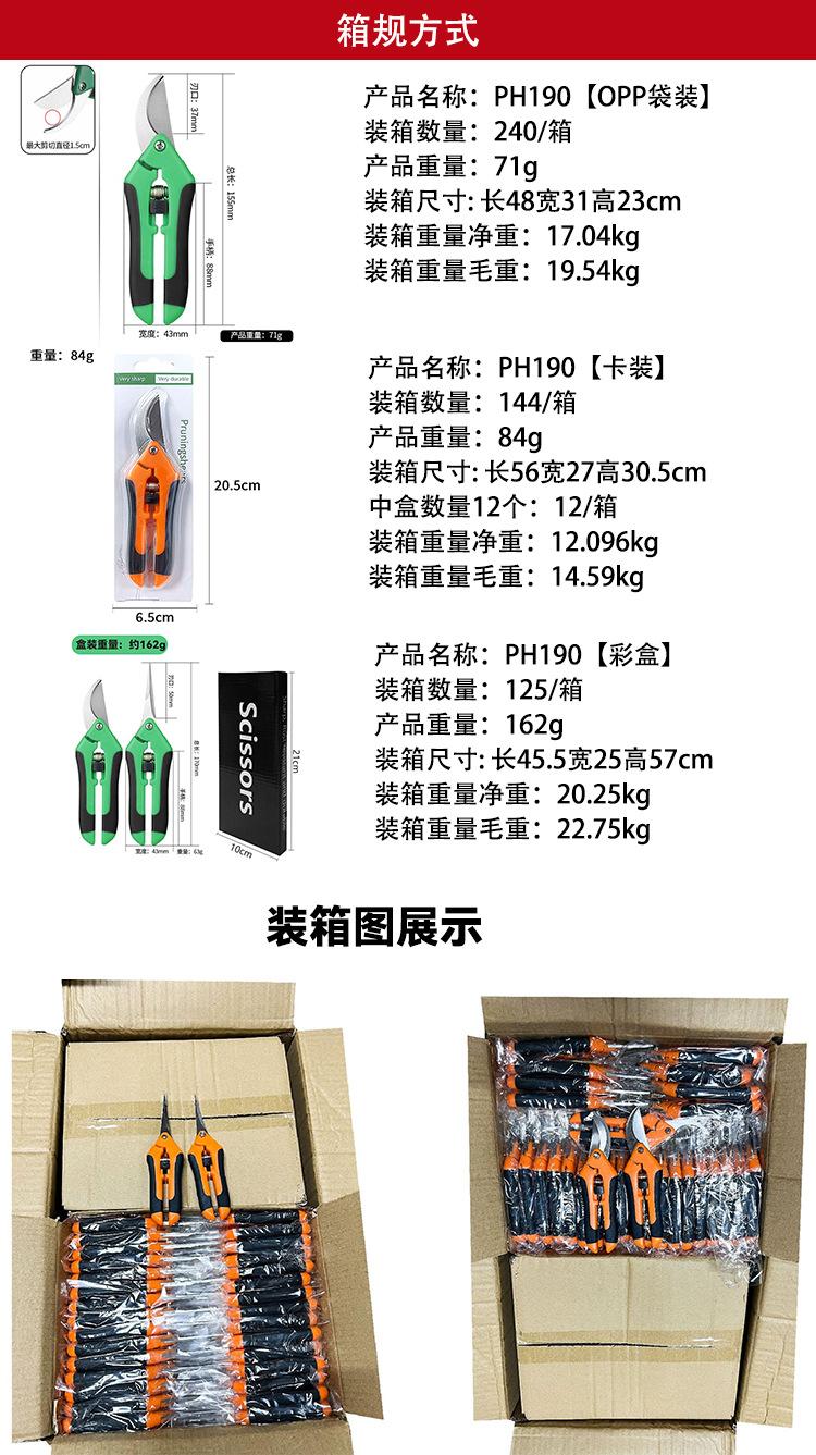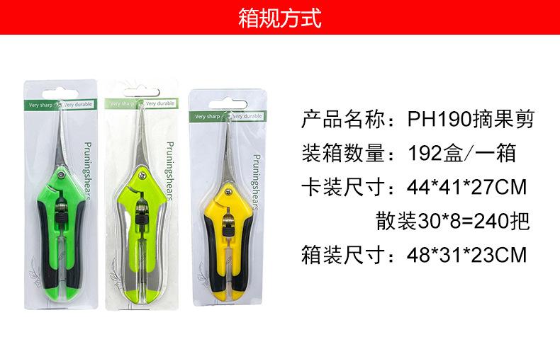 PH190 green and black fruit picking scissors (OPP bag), PH190 fruit green fruit scissors (OPP bag), PH190 oran...