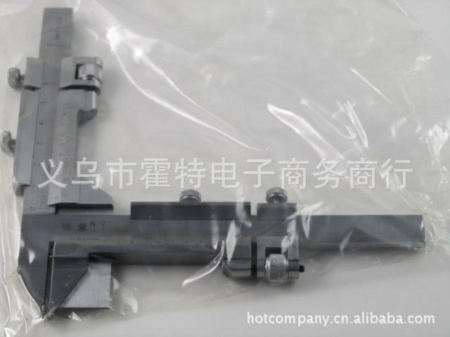 El calibrador de espesor de diente tiene dos escalas vernier móviles que son perpendiculares entre sí. Una tiene dos mordazas de medición, una para medir el espesor de diente cordal; la otra es para "predeterminar" la altura de diente cordal.