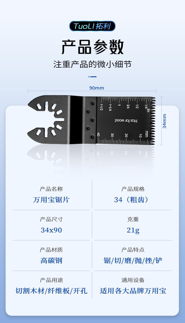 Hoja de Sierra Multiusos de Dientes Gruesos de 34 mm de Instalación Rápida Herramienta Eléctrica para Carpintería Accesorios de Hoja Oscilante Venta al por Mayor
