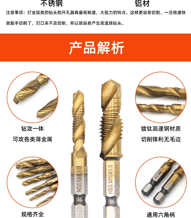 Juego de brocas para taladrar y roscar, brocas compuestas integradas para taladrar y roscar, tornillos autorroscantes de acero inoxidable tres en uno