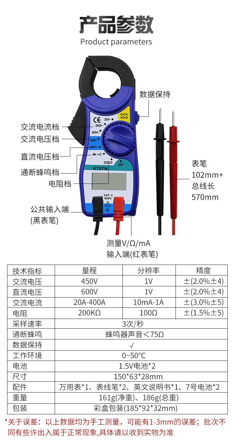 Multímetro de pinza KT87N, medidor de pinza digital de bolsillo azul para electricista, mini medidor de flujo de pinza de alta precisión, venta al por mayor