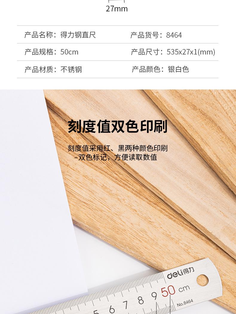 Regla de acero Deli 8464 de 50 cm, regla de metal duradera de 20 cm, papelería de oficina al por mayor