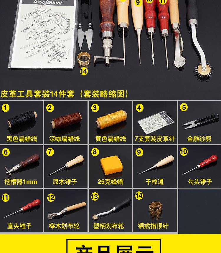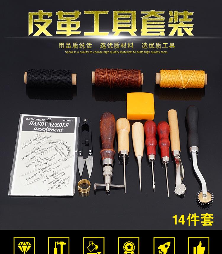 Traje de cuero hecho a mano tallado dorado cosido a mano traje Herramientas de cuero traje DIY Hecho a mano Traje de cuero 08 Juego de 14 piezas