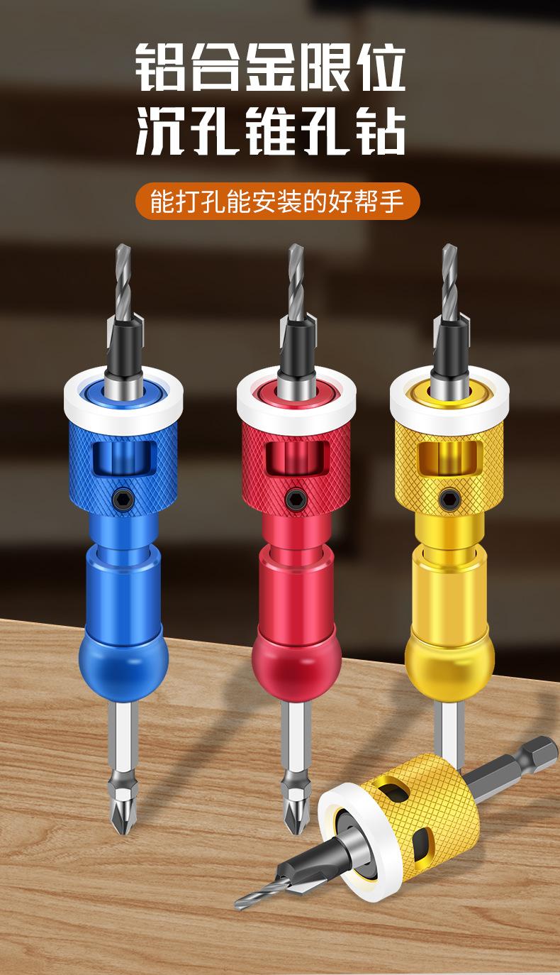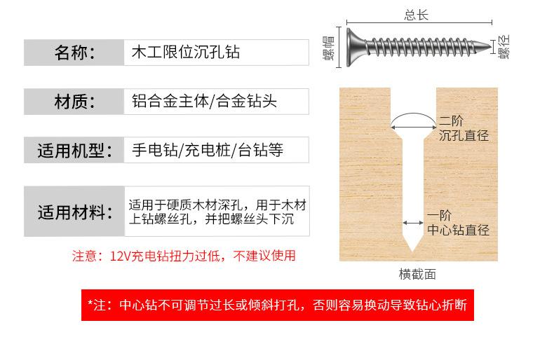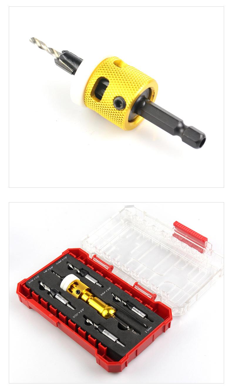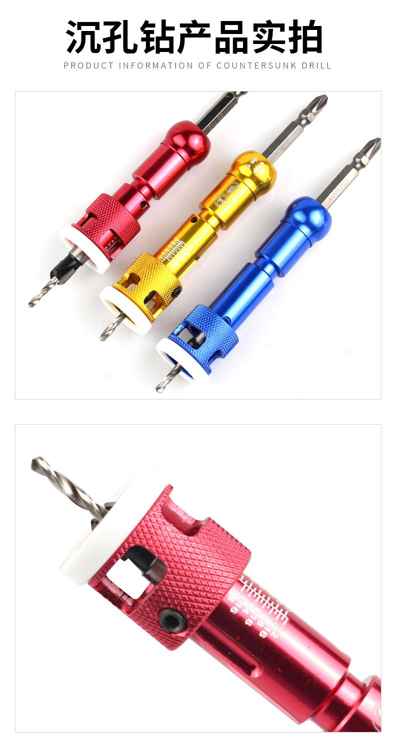 Broca avellanada con tope para carpintería, herramienta de perforación de agujeros para tornillos de instalación, broca para agujeros cónicos avellanados