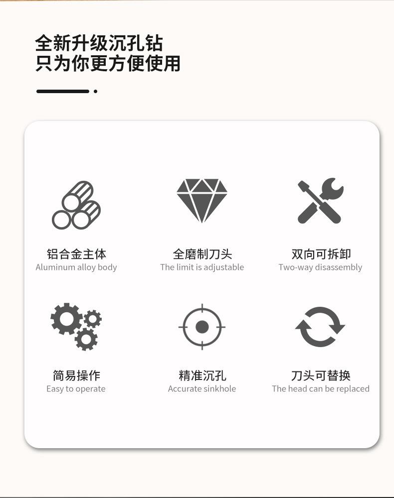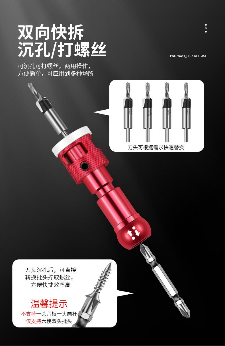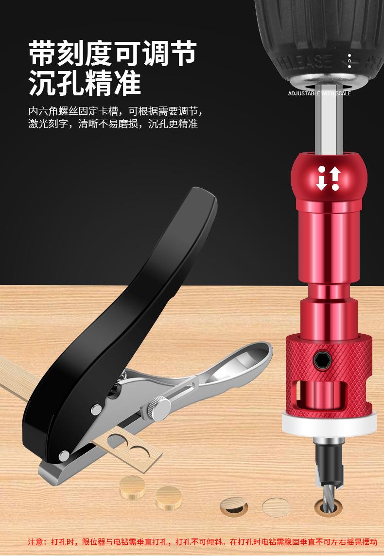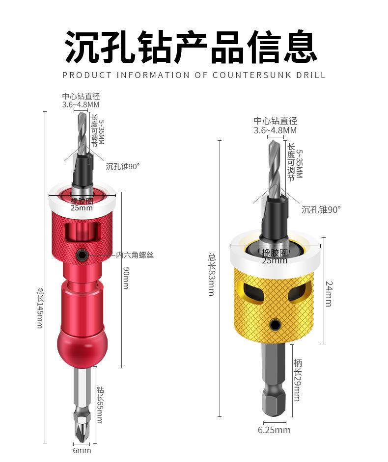 Broca avellanada con tope para carpintería, herramienta de perforación de agujeros para tornillos de instalación, broca para agujeros cónicos avellanados